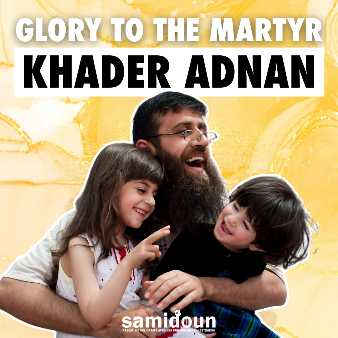 Marié à Randa Musa, père de neuf enfants (Maali, Beesan, Abdel-Rahman, Hamza, Mohammed, Ali, Maryam, Omar et Zainab), Khader Adnan était profondément aimé dans sa communauté d’Arraba, près de Jénine, et au sein de sa famille, où il représentait un modèle de tendresse et de chaleur humaine. Boulanger de métier, il tenait une épicerie-boulangerie à proximité de Qabatiya, dans la région de Jénine, et était porte-parole du Mouvement du Jihad Islamique Palestinien. Inlassable combattant de la liberté, il a arraché sa libération à quatre reprises grâce à ses grèves de la faim, insufflant une nouvelle dynamique révolutionnaire au mouvement des prisonnier·es. Présent dans chaque tente de solidarité aux grévistes de la faim, dans les funérailles de chaque martyr, auprès de chaque prisonnier libéré, Cheikh Khader Adnan était une présence constante. Chaque prisonnier·e, chaque famille de détenu·e savait pouvoir compter sur son soutien inébranlable. Il participait, dirigeait, et prenait la parole dans toutes les manifestations, grandes ou petites, en soutien au mouvement carcéral, pour exiger la libération, et pour dénoncer la « coordination sécuritaire » avec l’occupation menée par l’Autorité palestinienne — voix inflexible de la conscience et de la résistance.