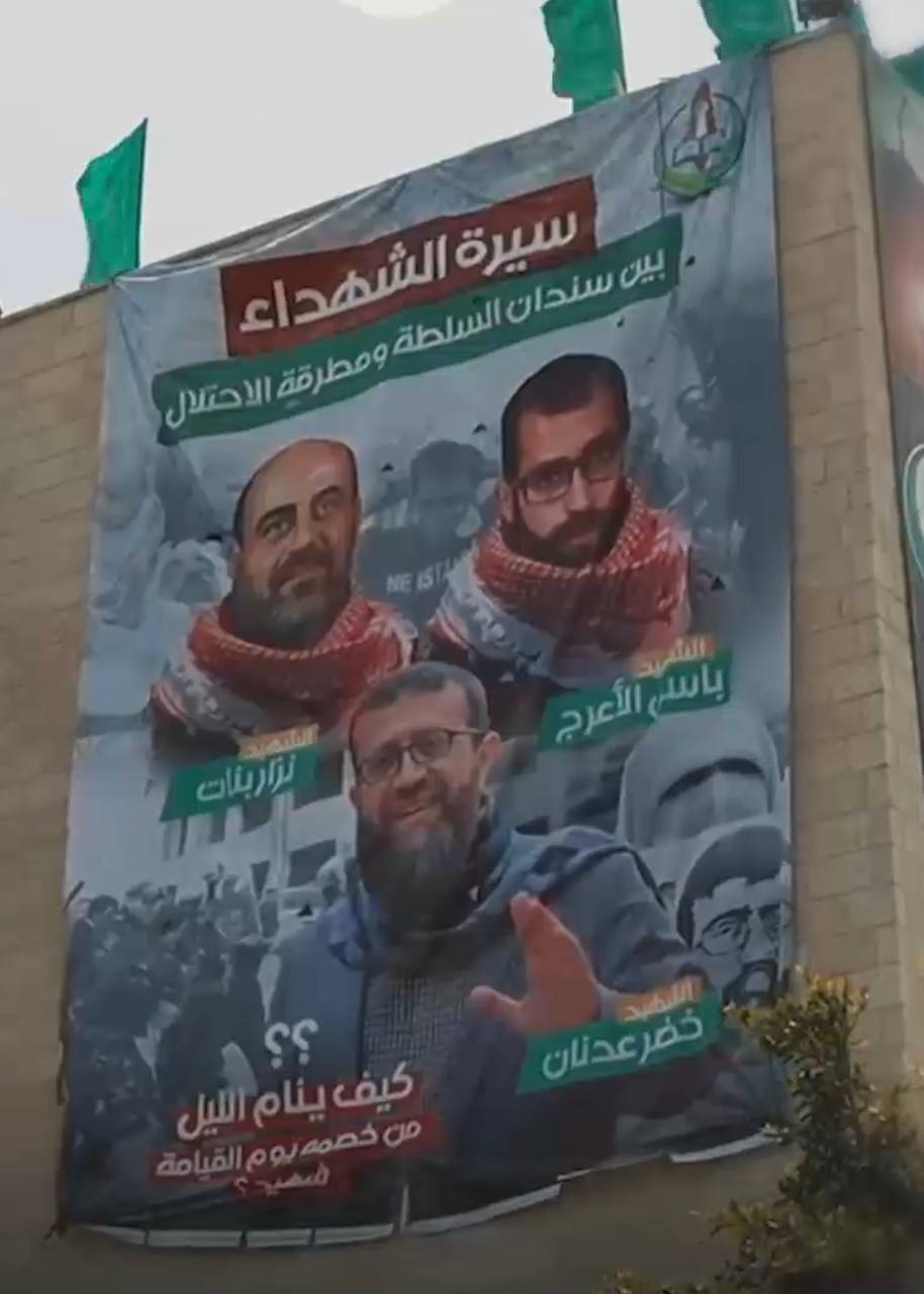 Le mouvement étudiant palestinien a également lié les deux martyrs, en déployant une banderole à leur effigie, pour honorer Nizar Banat, Basil al-Araj et Khader Adnan, et leur héritage de lutte pour corriger la boussole de la cause palestinienne, vers le retour et la libération.