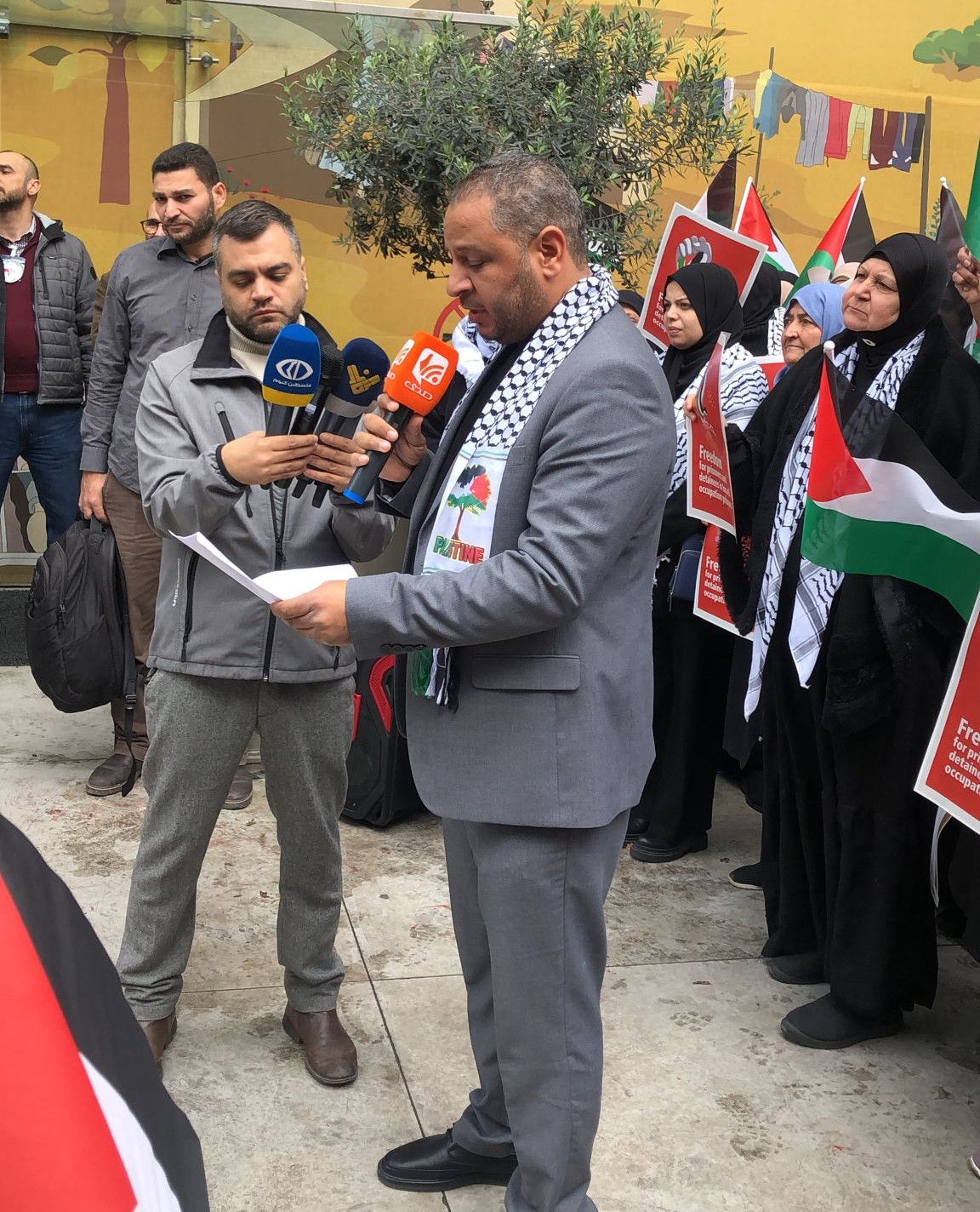 Parmi les orateurs de l’événement figuraient l’ancien prisonnier libanais Anwar Yassin et Sami Hammoud, directeur de l’organisation » Steadfast for the Right to Return « (Fermeté dans la défense du droit au retour). À la fin du rassemblement, les organisateurs ont délivré un message à l’adresse du CICR et lui demandant d’agir afin de protéger les vies et les droits des prisonniers palestiniens des geôles de l’occupation. L’événement s’est terminé au moment où des femmes âgées présentes ont dirigé des chants réclamant la liberté et la victoire pour la Palestine.