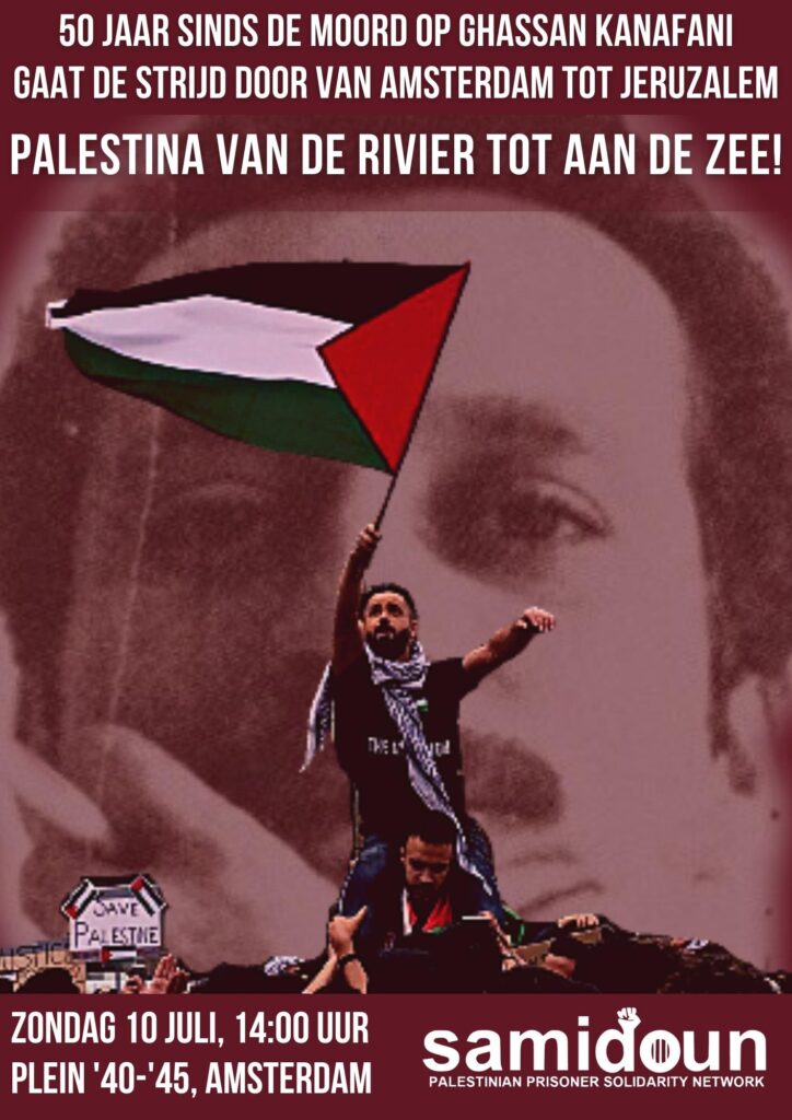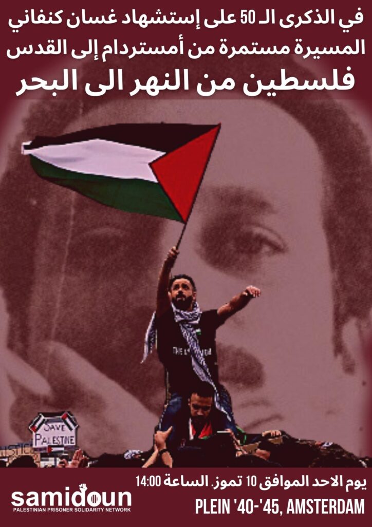Samidoun organiseert op zondag 10 juli een demonstratie op Plein ’40-’45, Amsterdam om het leven van Ghassan Kanafani te herdenken, de Palestijnse revolutionair en schrijver die vijftig jaar geleden werd vermoord door de Mossad.