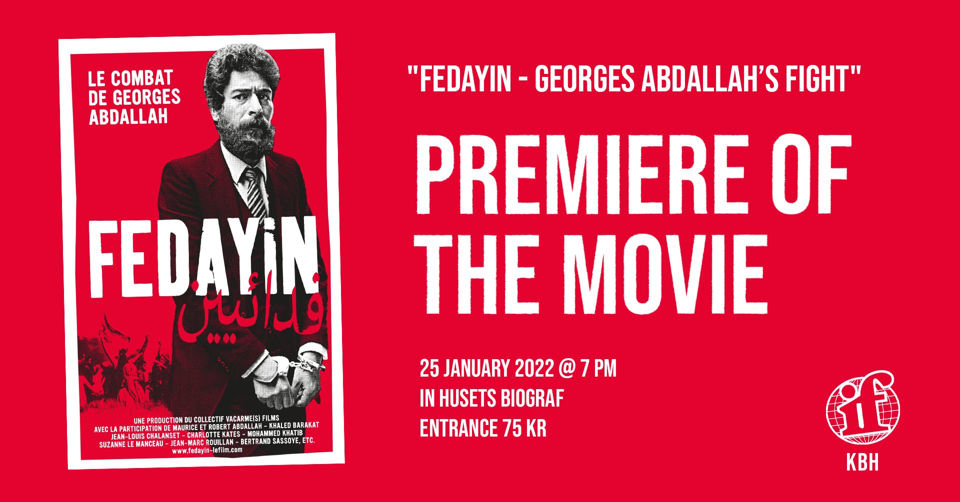 Tickets cost 75 kr. and should be bought in advance via mobilepay “IF Kbh Cinema”, MobilePay number: 4161NA. Write you name + Fedayin when paying, e.g.: “Anne Hansen Fedayin”.