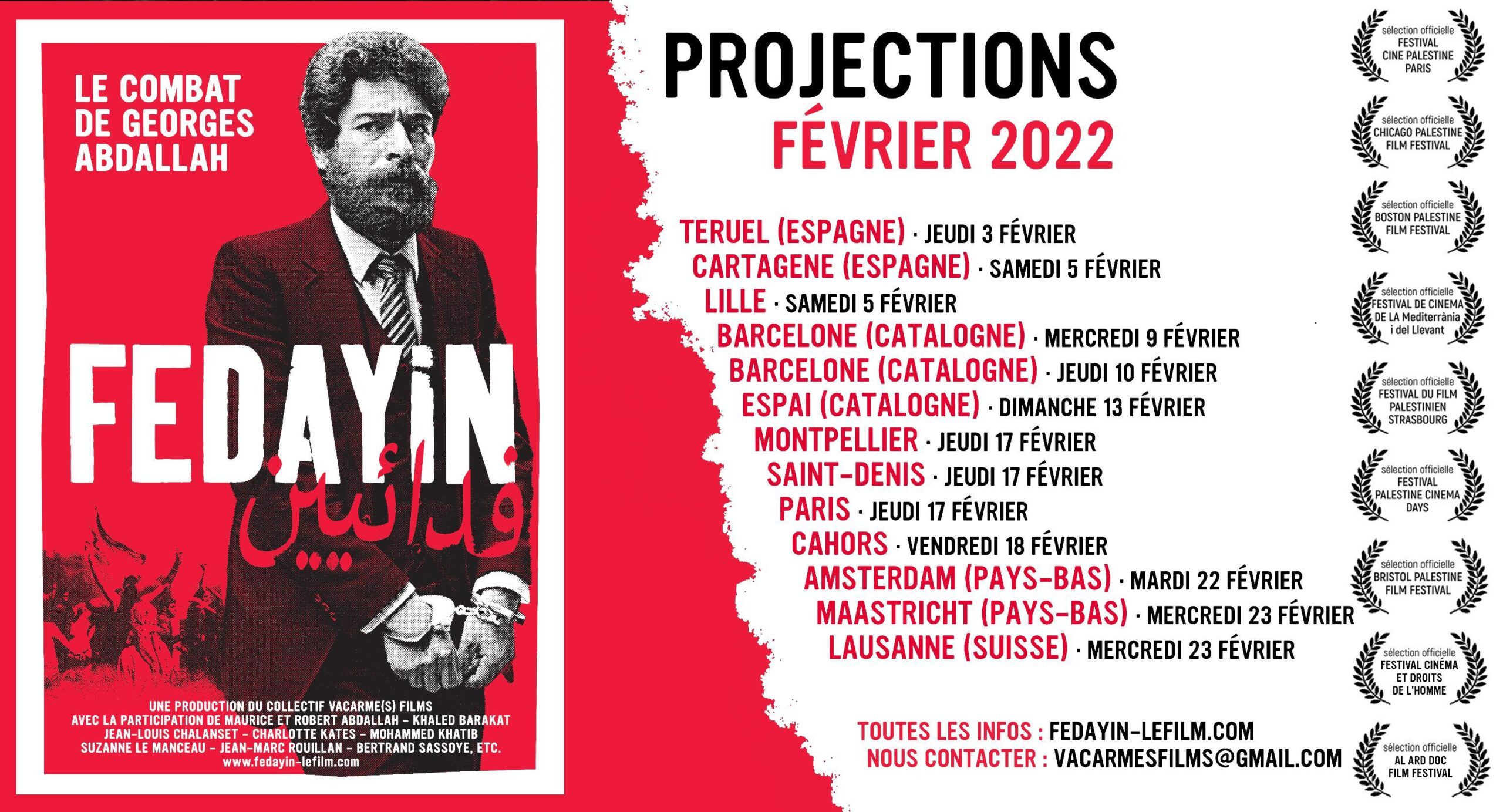 · Lille (France) Saturday February 5 at 2 p.m. Screening organized by the Georges Abdallah Lille Solidarity Committee and the Palestinian Resistance Support Collective, followed by a debate with a member of the Collectif Vacarme(s) Films Cinéma L’Univers, 16 rue Georges Danton, 59000 Lille Facebook event