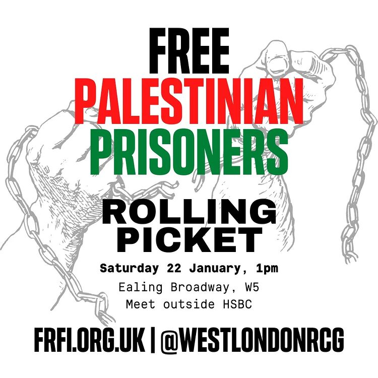 Join West London RCG to protest against the businesses, banks and institutions in Britain that support Israel’s oppression of the Palestinian people.