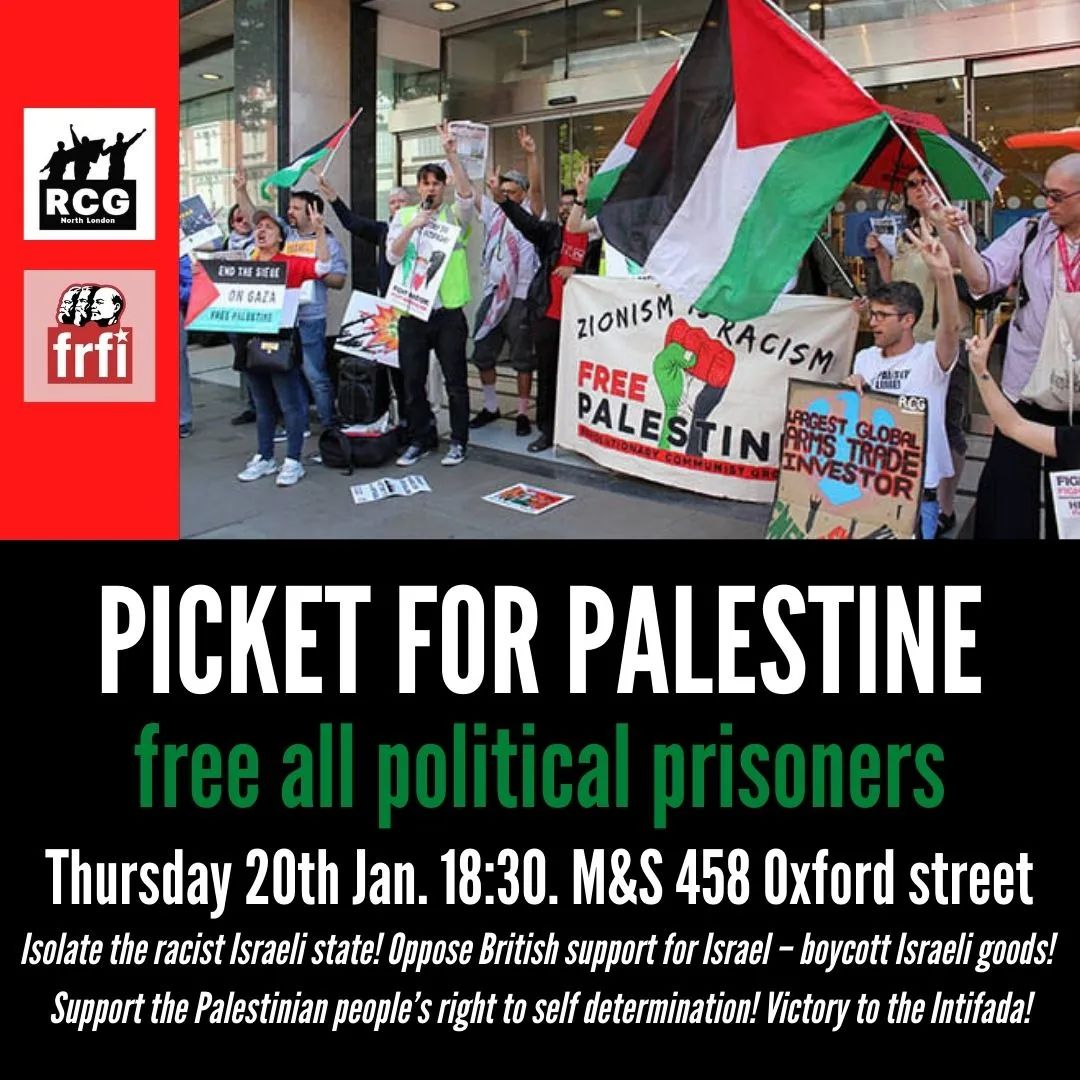 In response to the @samidounnetwork call for a week of action to free Ahmad Sa’adat and all Palestinian prisoners we will be picketing outside Marks & Spencers on Oxford Street.