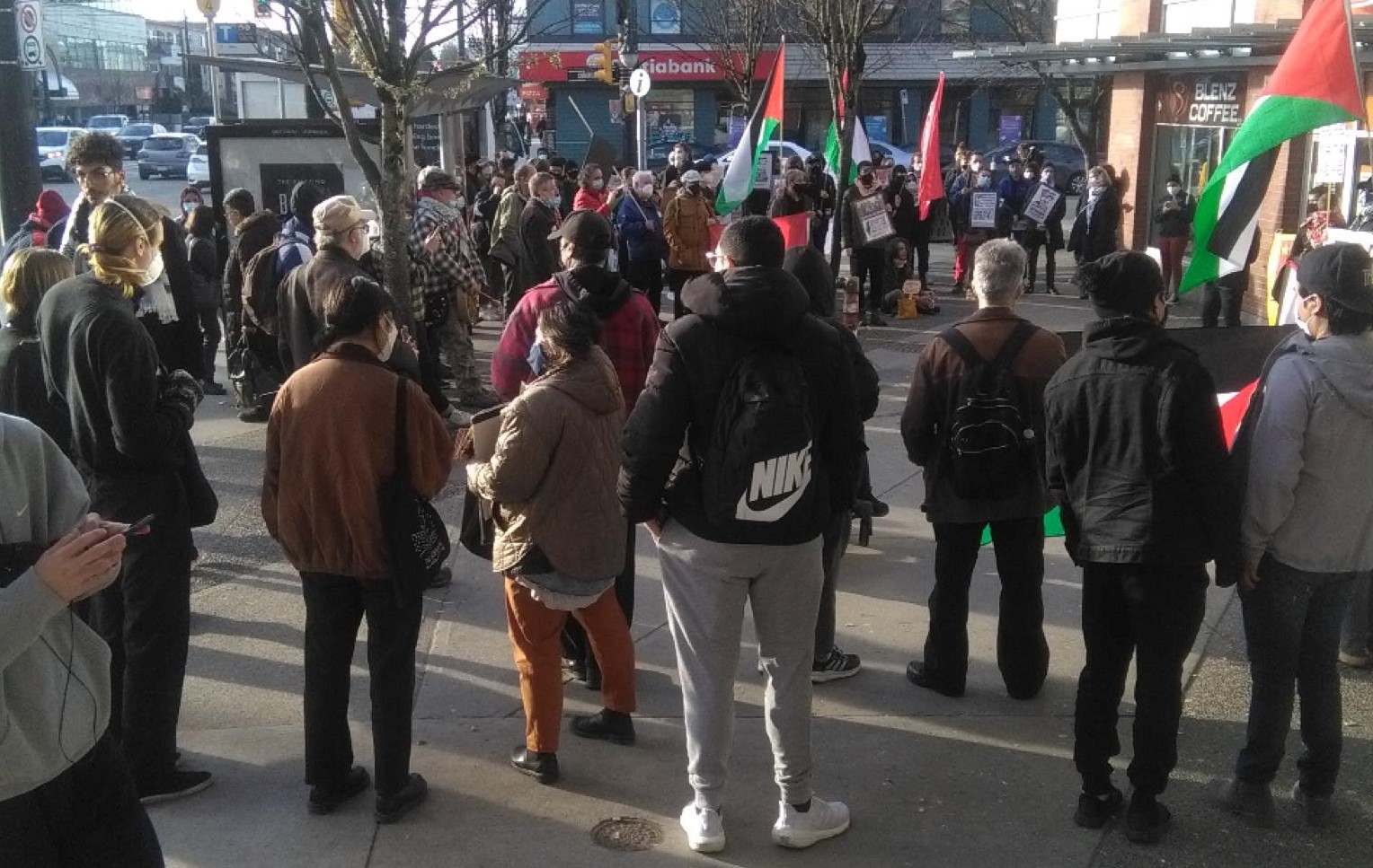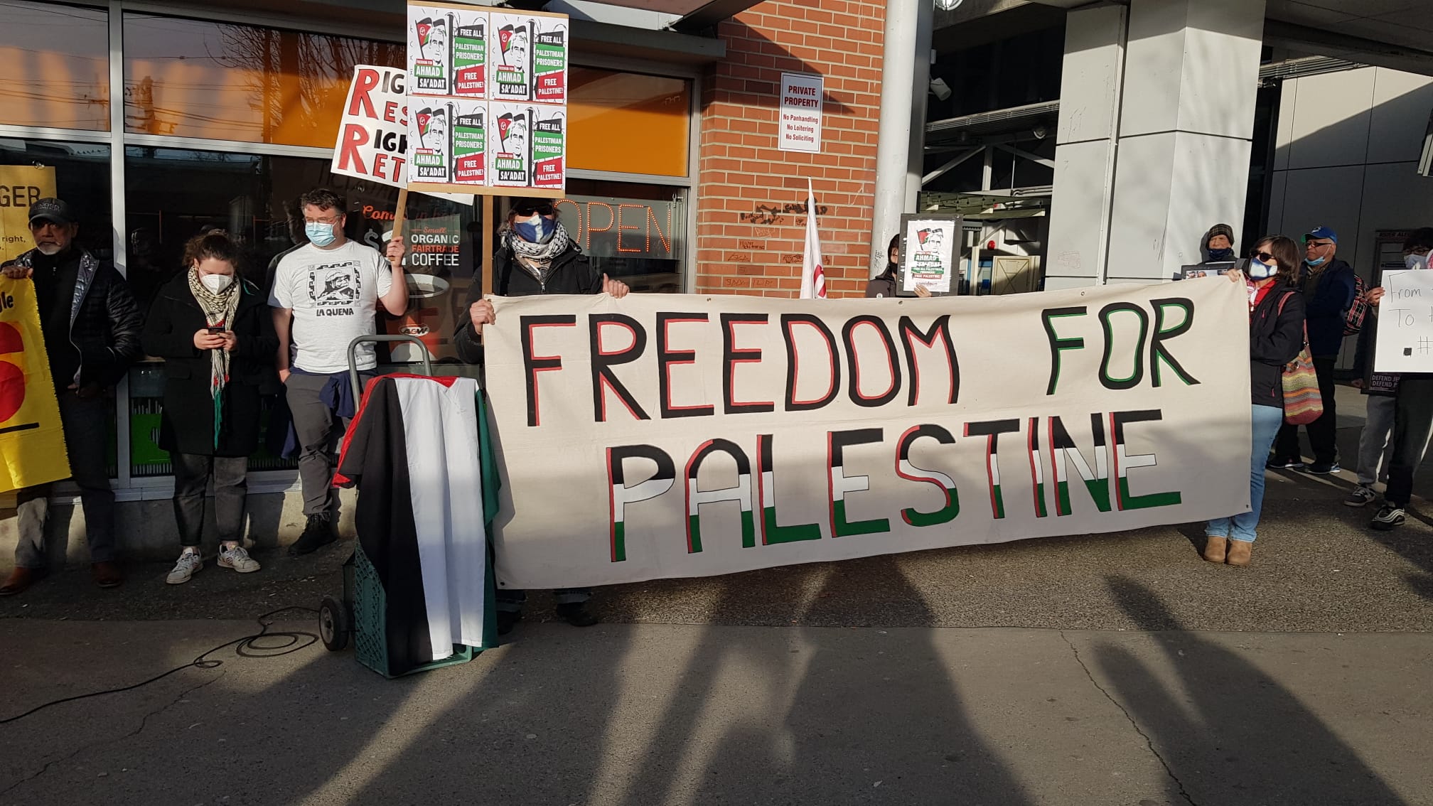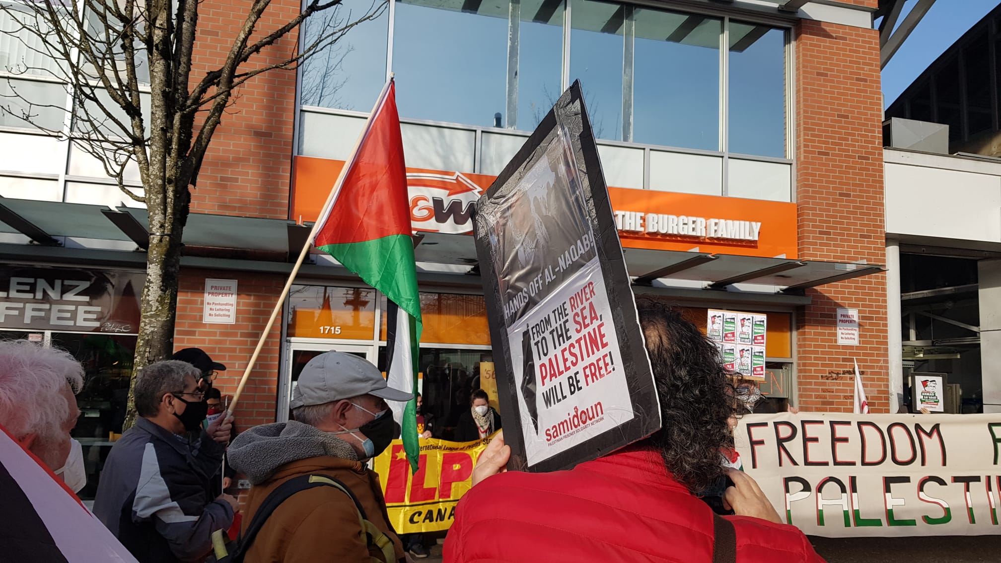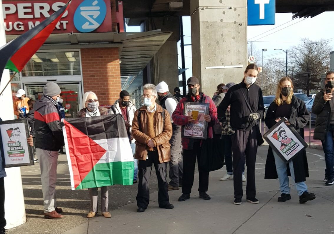The protest was organized by Samidoun Palestinian Prisoner Solidarity Network, the Palestinian Youth Movement, Canada Palestine Association, BDS Vancouver – Coast Salish and the International League of Peoples’ Struggle as part of the international Week of Action to Free Ahmad Sa’adat and all Palestinian Prisoners. Speakers expressed their strong support for Palestinian political prisoners and urged greater mobilization for Palestinian liberation.