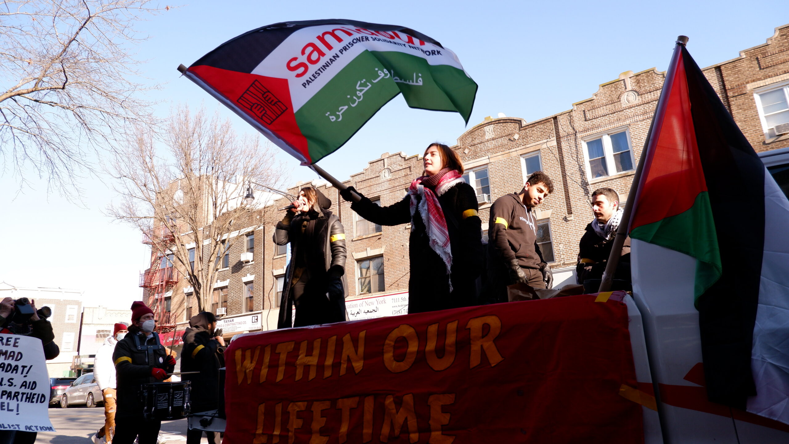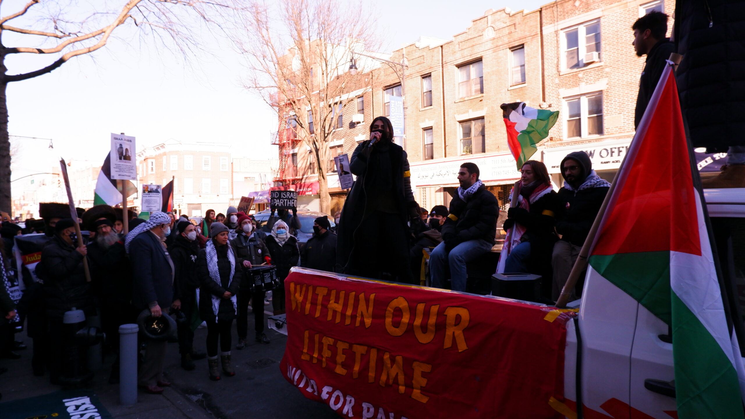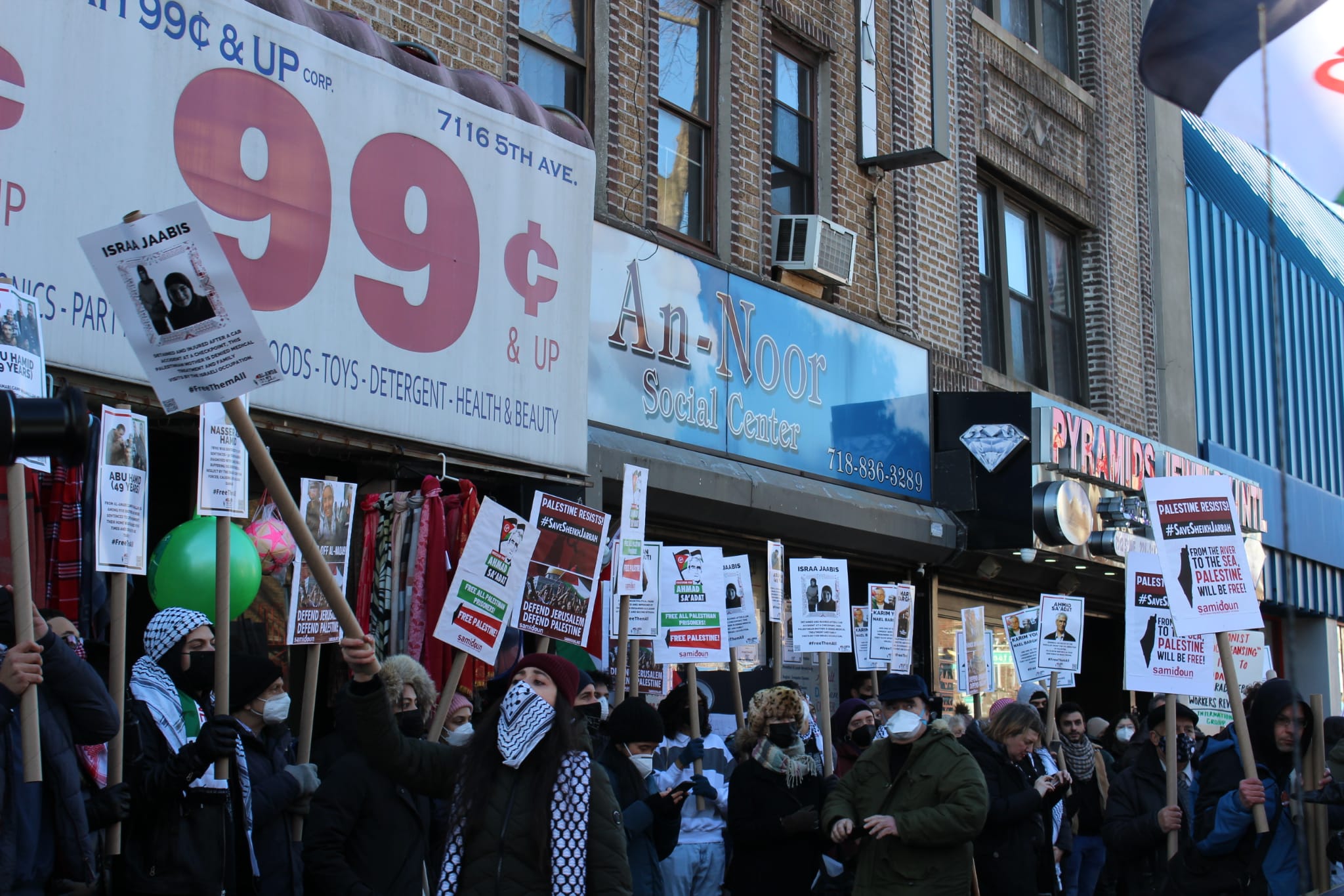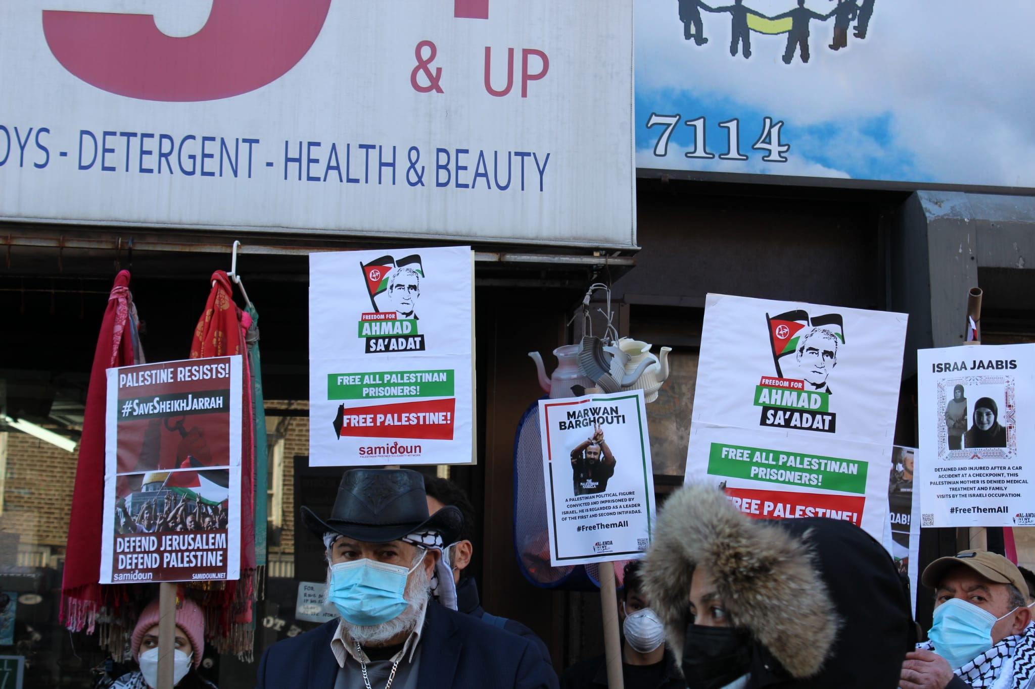 Palestinians and supporters of Palestine rallied for freedom for Ahmad Sa’adat and all Palestinian prisoners in Bay Ridge, Brooklyn, the heart of New York’s Palestinian and Arab community, on Saturday, 22 January. Part of the international week of action to free Ahmad Sa’adat and all Palestinian prisoners, the action drew the largest crowds in recent memory for a New York protest in support of the liberation of jailed Palestinians.