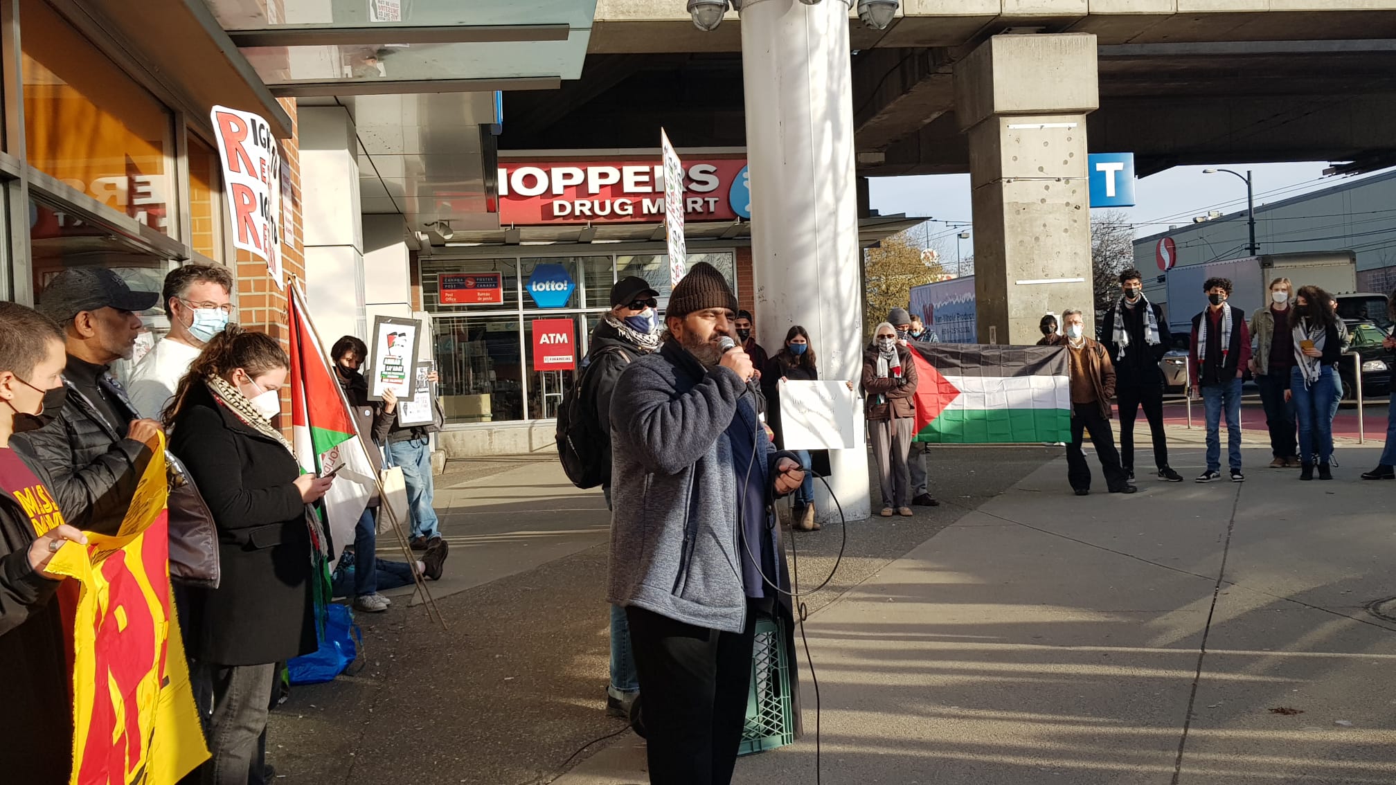 Javid spoke on behalf of Samidoun Vancouver, focusing on the 500 Palestinian administrative detainees jailed without charge or trial, currently engaged in a collective boycott of the Israeli military court. He focused on the arbitrary and indefinite nature of administrative detention as a form of individual and collective torture, and urged support for the administrative detainees and all Palestinian prisoners struggling for freedom.