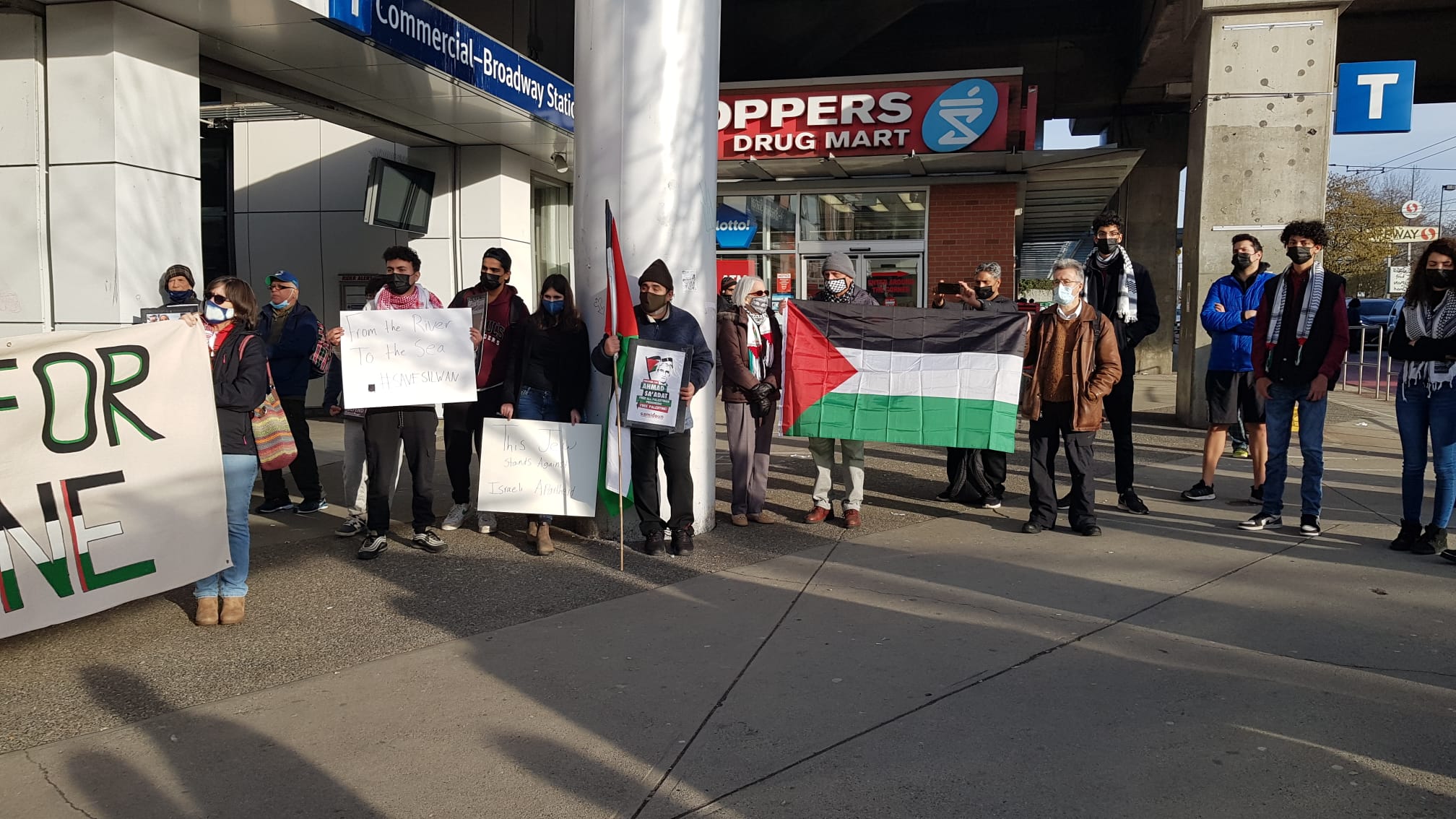Crowds of activists gathered outside the Commercial-Broadway Skytrain station in Vancouver on a sunny Saturday afternoon to call for freedom for Ahmad Sa’adat and all Palestinian prisoners. The rally expressed support for Palestinians struggling for return and liberation in al-Naqab, Jerusalem, and throughout occupied Palestine as well as in exile and diaspora.