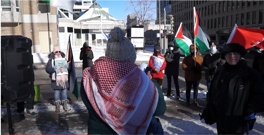 On Sunday, 23 January, campaigners in Montreal gathered on a snowy day outside the Israeli consulate to call for justice and freedom for Palestinian political prisoners. The demonstration, organized by Palestinian and Jewish Unity (PAJU), the Canadian Palestinian Federation of Quebec and Canada Sanctions Israel, came as part of the international Week of Action to Free Ahmad Sa’adat and all Palestinian Prisoners.