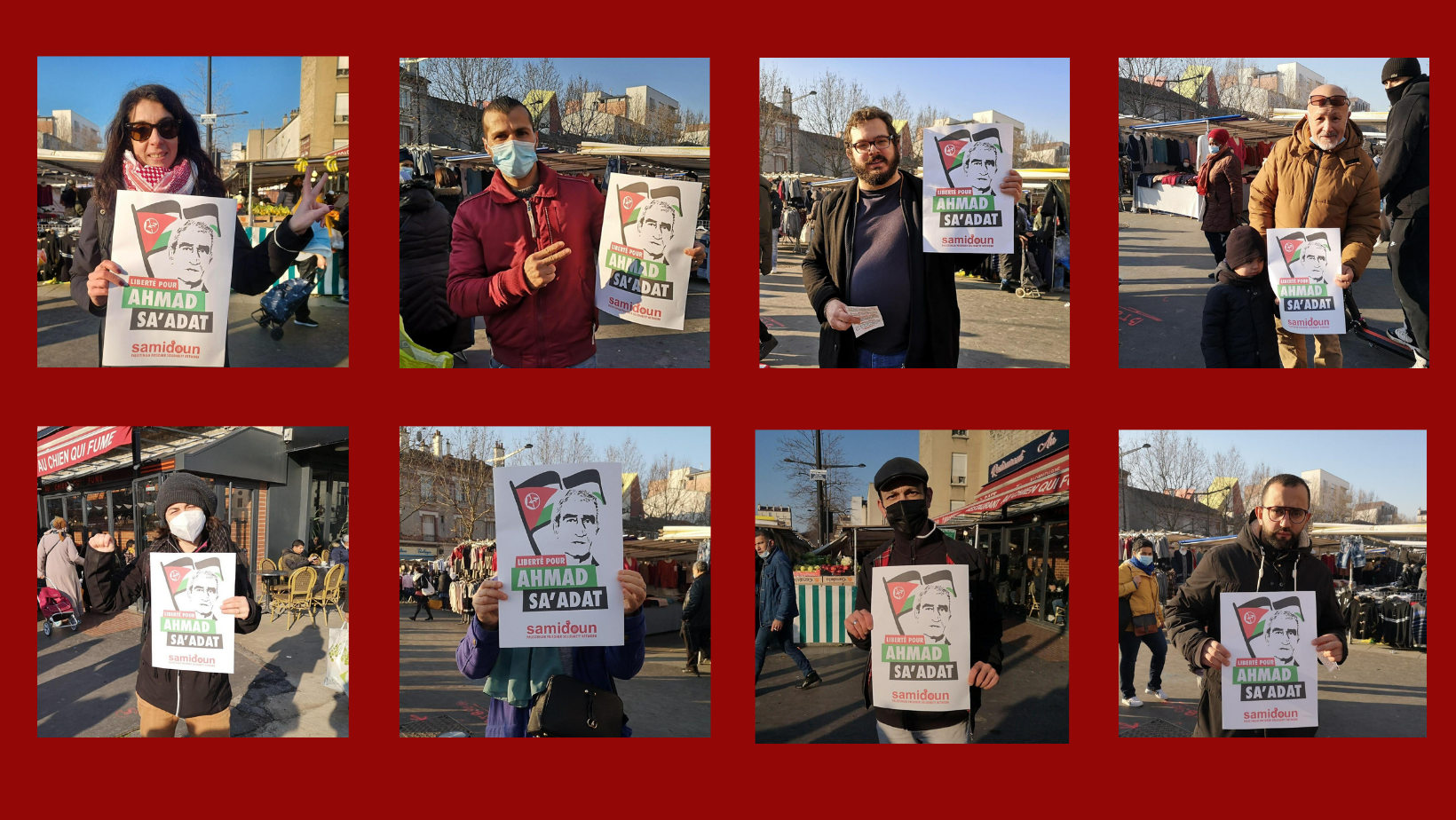 Dozens also posed for solidarity photos calling for the release of Ahmad Sa’adat and all Palestinian prisoners: