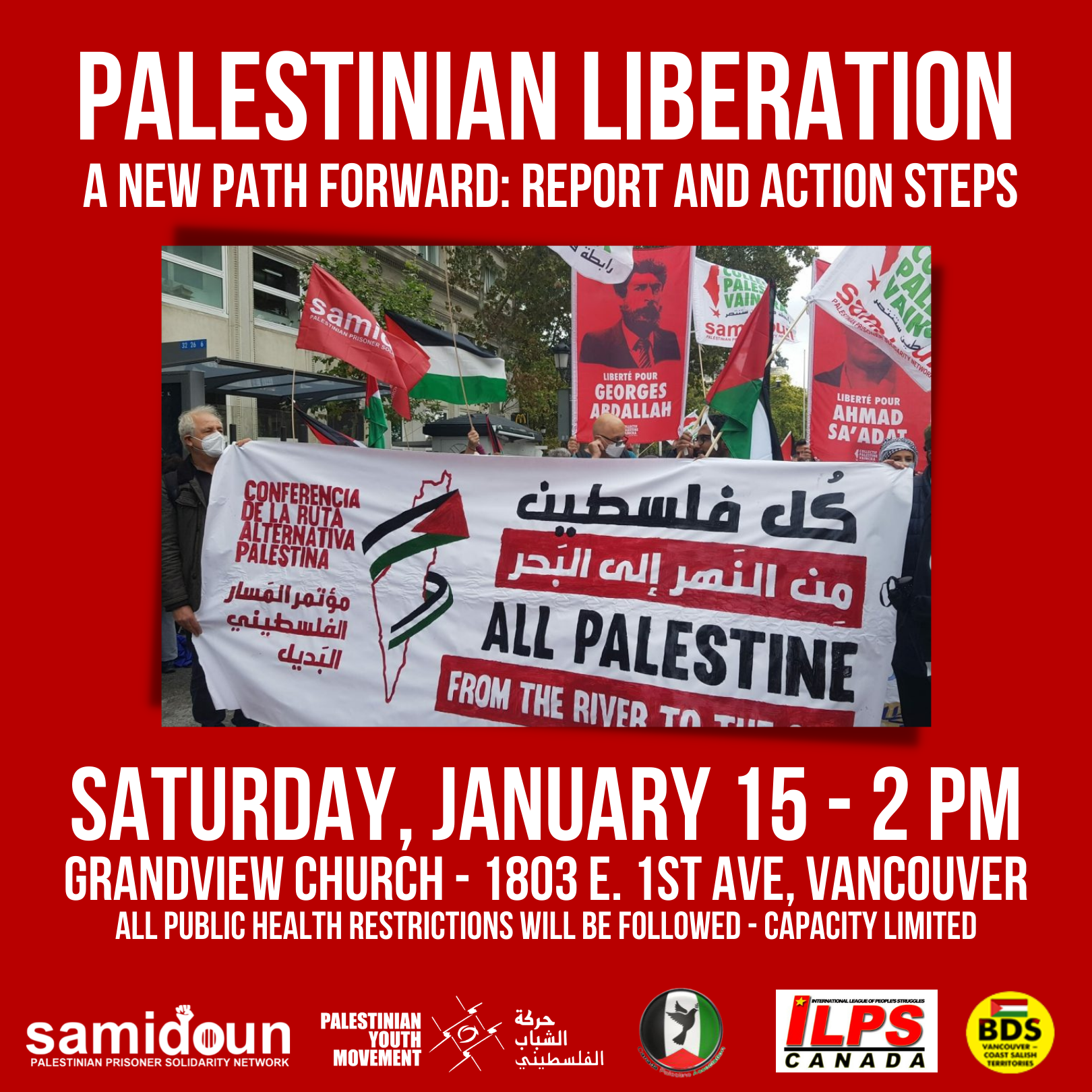 Organized by Samidoun Vancouver, Palestinian Youth Movement, Canada Palestine Association, ILPS Canada, BDS Vancouver Coast Salish