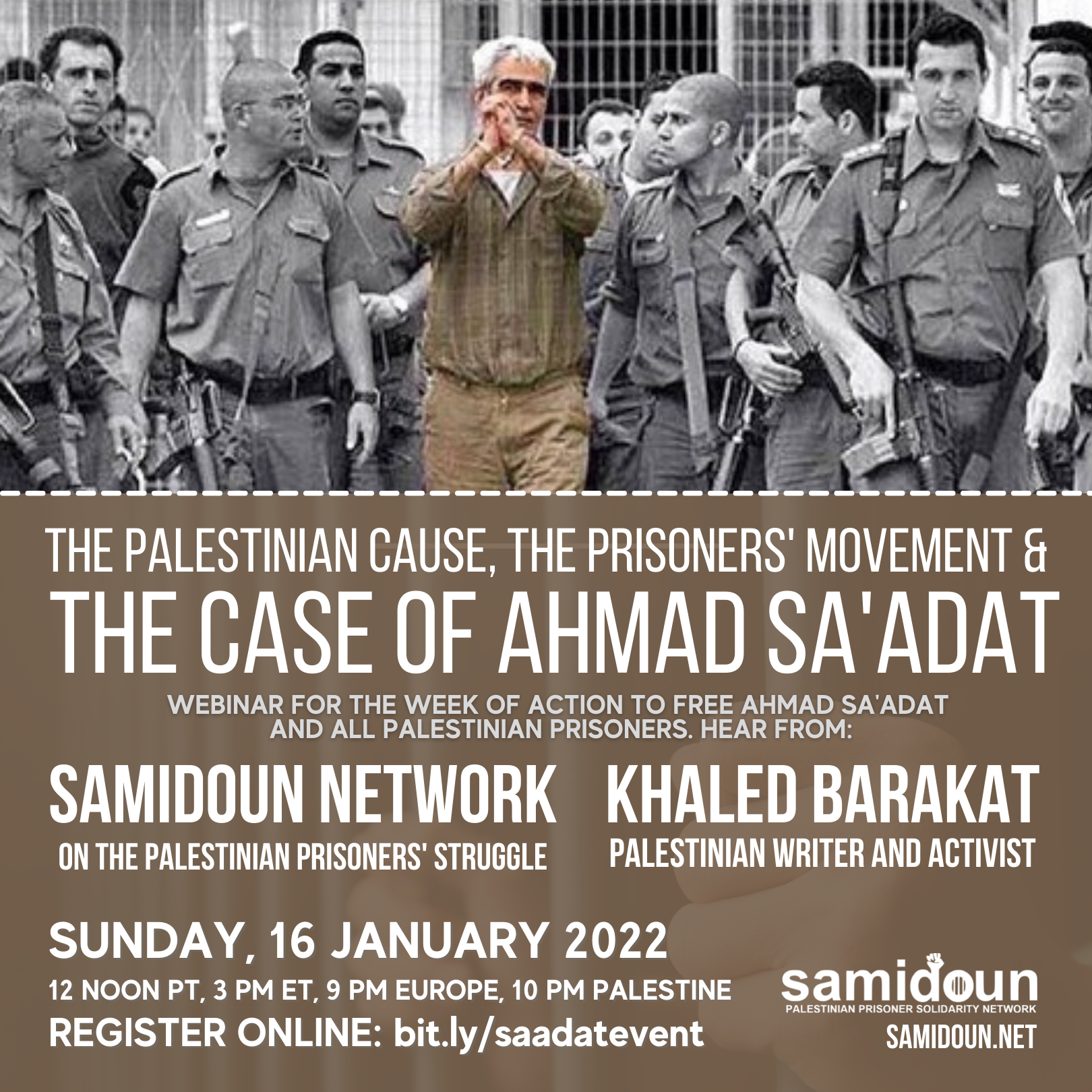 On 15-22 January 2022, join our collective call for the freedom of Ahmad Sa’adat and all Palestinian prisoners. Take action to escalate the boycott of Israel, end aid and support to Israel, organize for justice in Palestine and resist imperialism and colonialism.