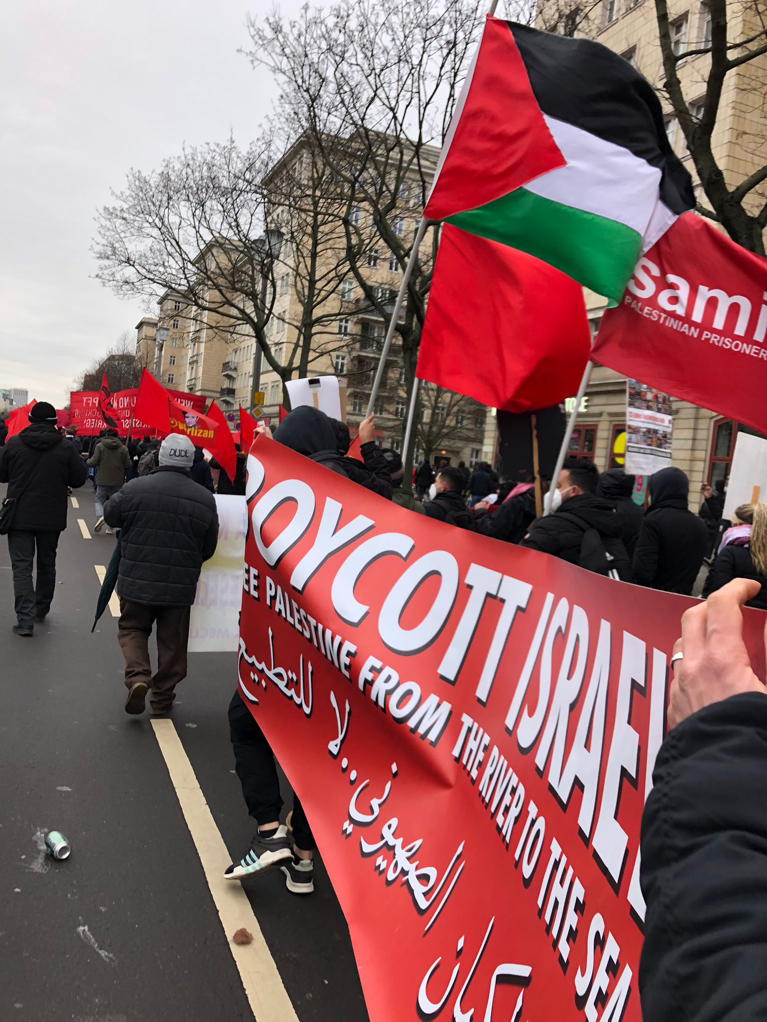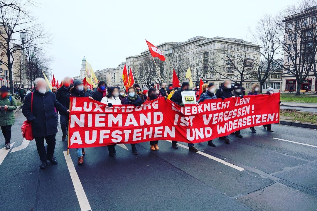 On 9 January 2022, Samidoun Palestinian Prisoner Solidarity Network marched in the Luxemburg-Liebknecht demonstration in Berlin (also known as the Liebknecht-Luxemburg-Lenin Demo). The annual march brings together revolutionary leftists throughout Germany and parts of Europe to commemorate the assassination of communist revolutionary leaders Rosa Luxemburg and Karl Liebknecht 103 years ago.