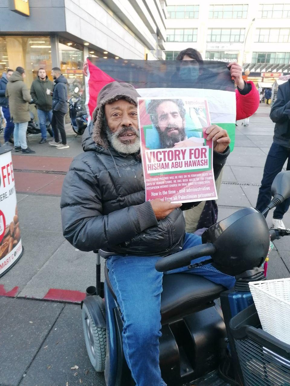 We stand today in honor of the workers in struggle throughout the years, who carried the banners of revolution in their era, and in honor of those who suffered and struggled inside the prisons and miserable cells, for the martyrs of the cause of justice everywhere. We carry the message of over 5,000 Palestinian prisoners who are paying the price for the end of colonialism, our prisoners who sleep on the ground of the cells and make their ceilings a sky of freedom. From Palestine and from the harsh refugee camps to here in Germany, we carry forward our dream of revolution and liberation.