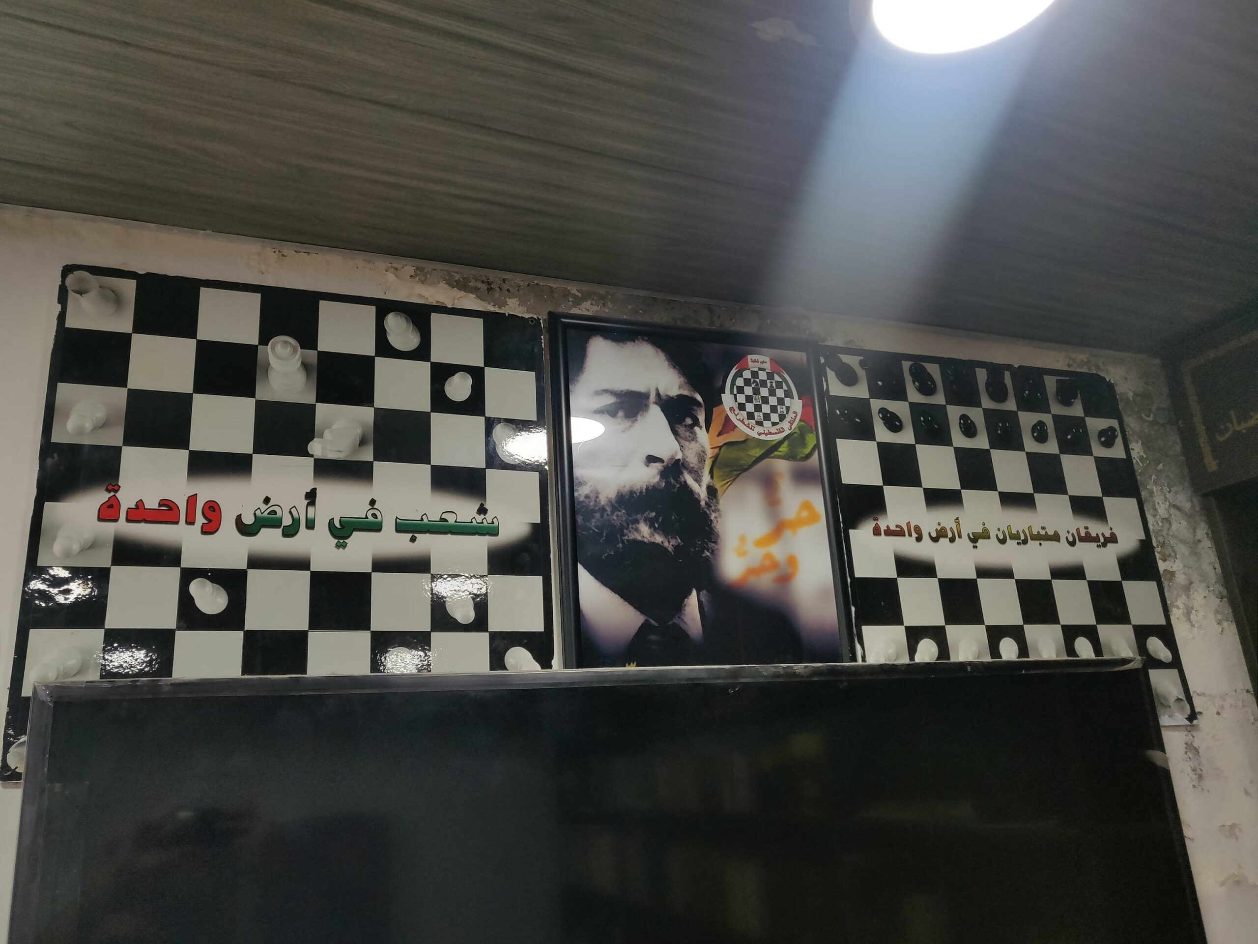 The Chess Club takes inspiration from the ideas and vision of Palestinian and Lebanese revolutionaries like George Habash and Georges Abdallah, whose portraits are prominently displayed in the Club.