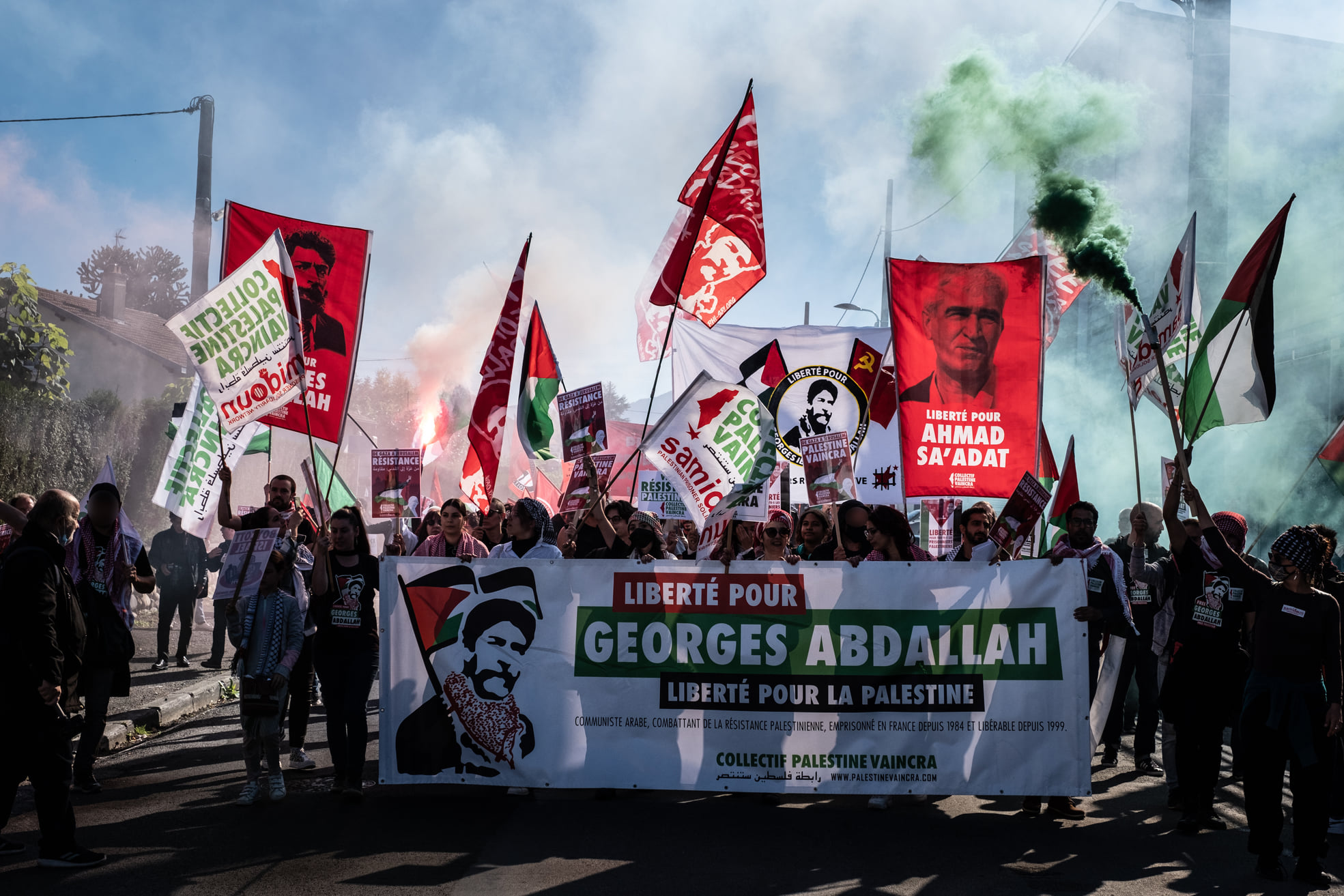 On Saturday, 23 October, over 1,000 people gathered to take the streets in Lannemezan, France, to demand the immediate release of Georges Abdallah, Lebanese Communist and Palestinian resistance fighter imprisoned in France since 1984. The march led from the Lannemezan train station to the gates of the prison where he is jailed. In the 11th annual march on Lannemezan, there was a historic influx and growth in participation following a month of mobilization and action by support committees in France and around the world.