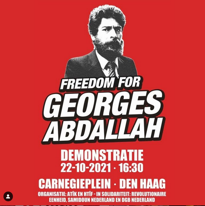 Join ATIK and HTIF, supported by Revolutionaire Eenheid, Samidoun Nederland and DGB Nederland for a demonstration at Carnegieplein in Den Haag to demand freedom for Georges Abdallah, the Lebanese Arab struggler for Palestine imprisoned in France for 37 years despite being eligible for release since 1999.