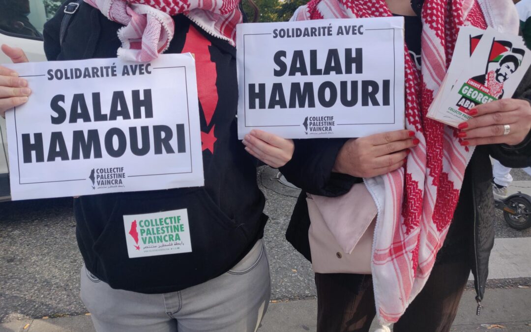 On Tuesday, 19 October, the Collectif Palestine Vaincra, a member organization of the Samidoun Network, organized a Palestine Stand at the entrance to the Bagatelle metro station in Toulouse, France. The stand displayed Palestinian flags and a large banner, declaring “Freedom for Georges Abdallah! Freedom for Palestine!”