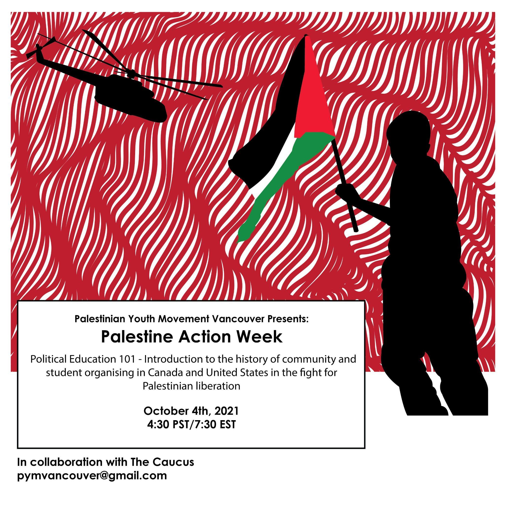Political Education 101. An introduction to the history of community and student organizing in Canada and the US in the fight for Palestinian liberation. October 4 at 4:30 PM PDT.