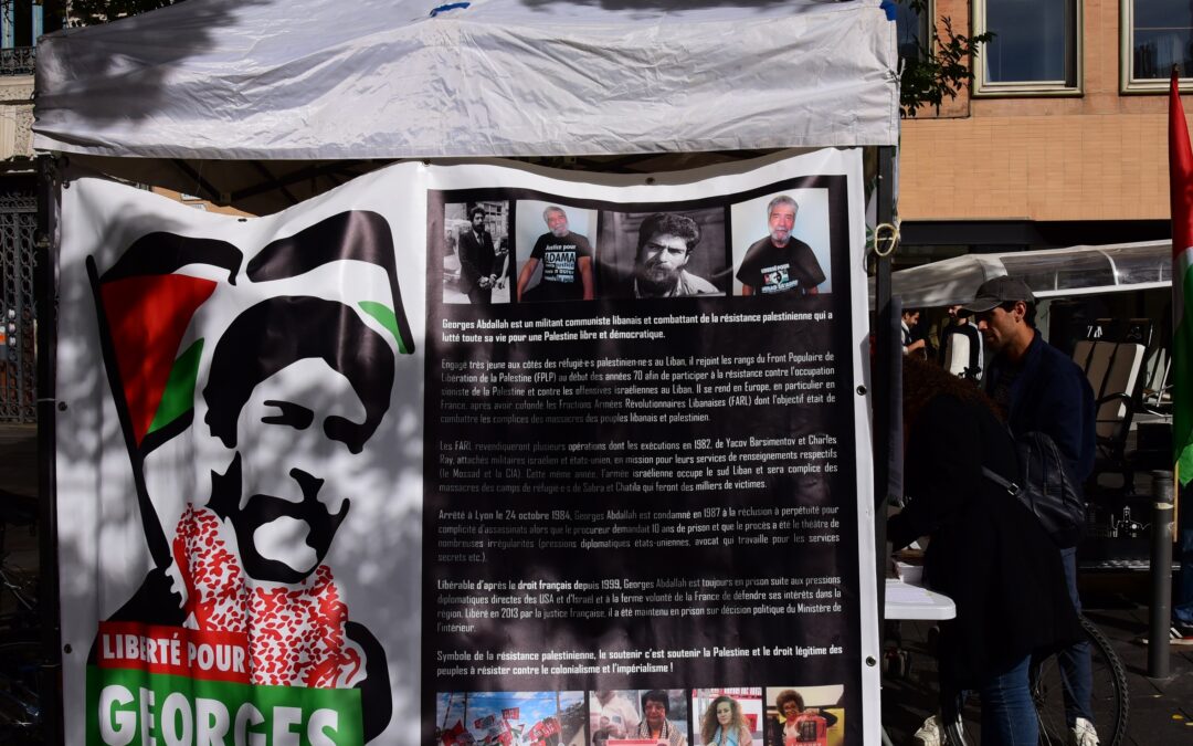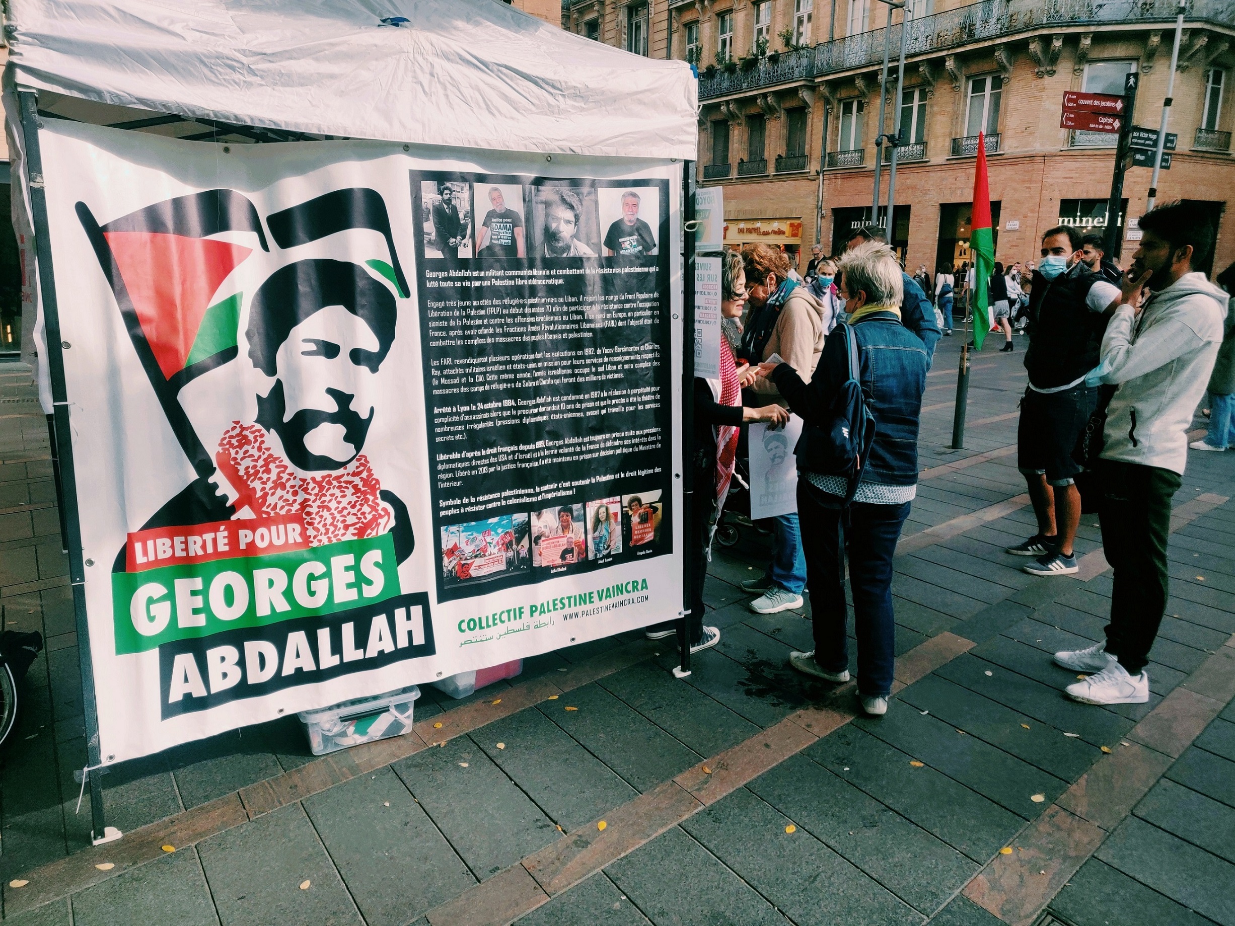 The stand builds atop multiple actions being organized in Toulouse by the Collectif to support Georges Abdallah. He has remained imprisoned largely because he refuses to renounce his revolutionary commitment and the legitimacy of his cause: the struggle of the peoples against imperialism, racism and colonialism.