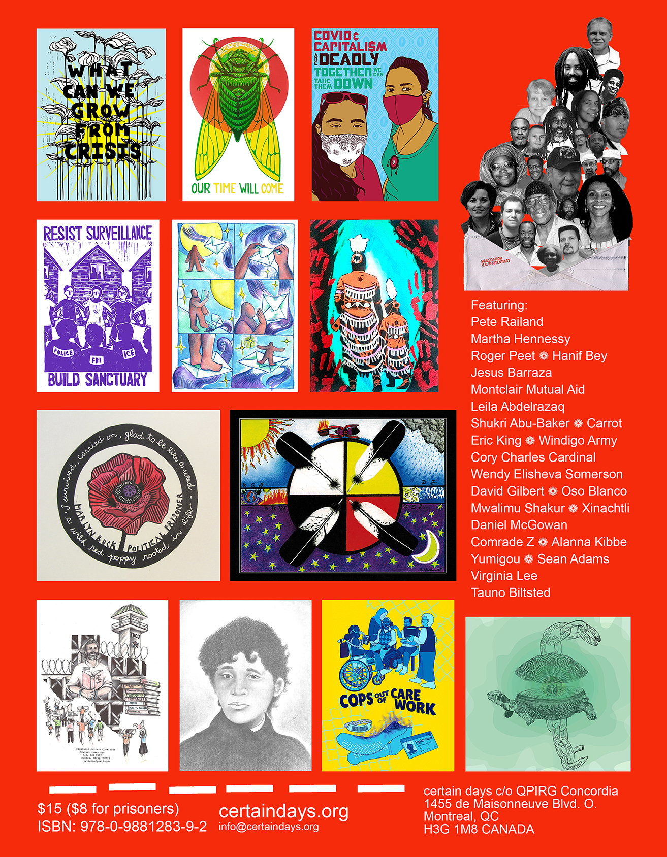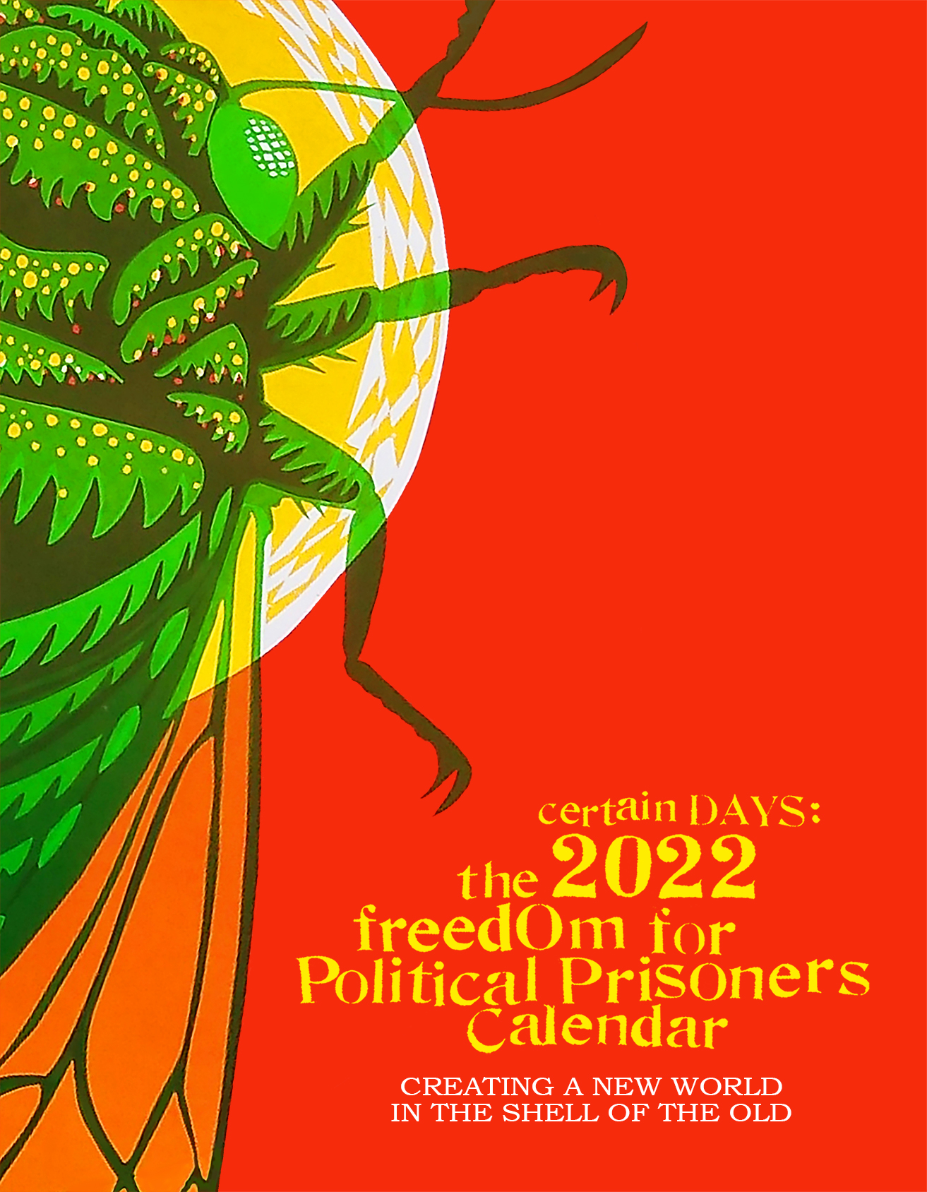 The Certain Days: Freedom for Political Prisoners Calendar is a joint fundraising and educational project between outside organizers in Montreal, Hamilton, New York and Baltimore, with two political prisoners being held in maximum-security prisons: David Gilbert in New York and Xinachtli (s/n Alvaro Luna Hernandez) in Texas. Founding members Herman Bell and Robert Seth Hayes (Rest in Power) were welcomed home from prison in 2018. Learn more about them at certaindays.org.