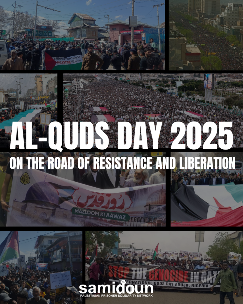 Samidoun Palestinian Prisoner Solidarity Network urges all Palestinian, Arab and international supporters of Palestine to escalate their organizing and struggle to stand with the heroic Palestinian resistance and confront colonial Zionist genocide and imperialist complicity and involvement. (The list below will be constantly updated at least once a day – please share the link with your friends and comrades!)
