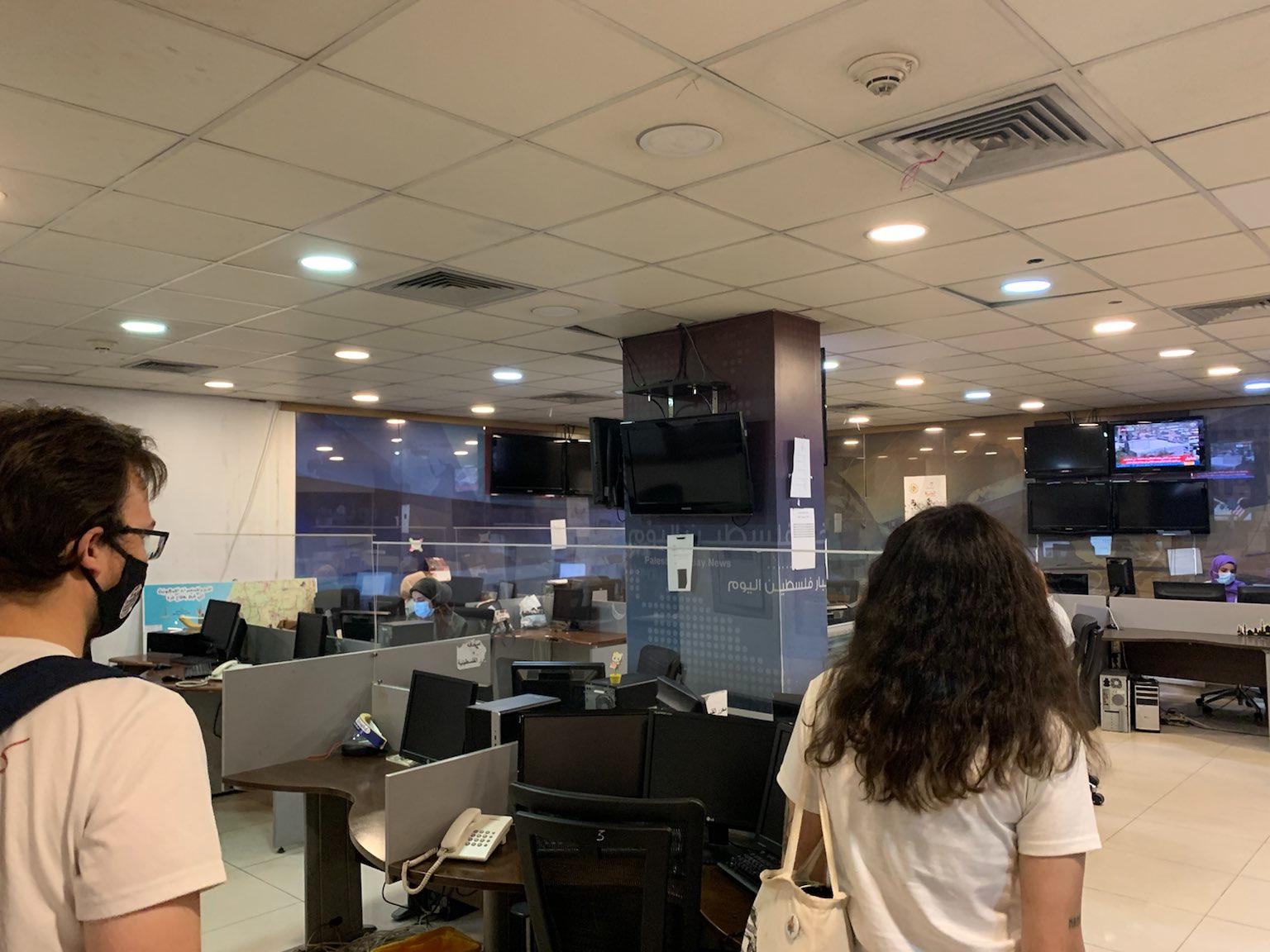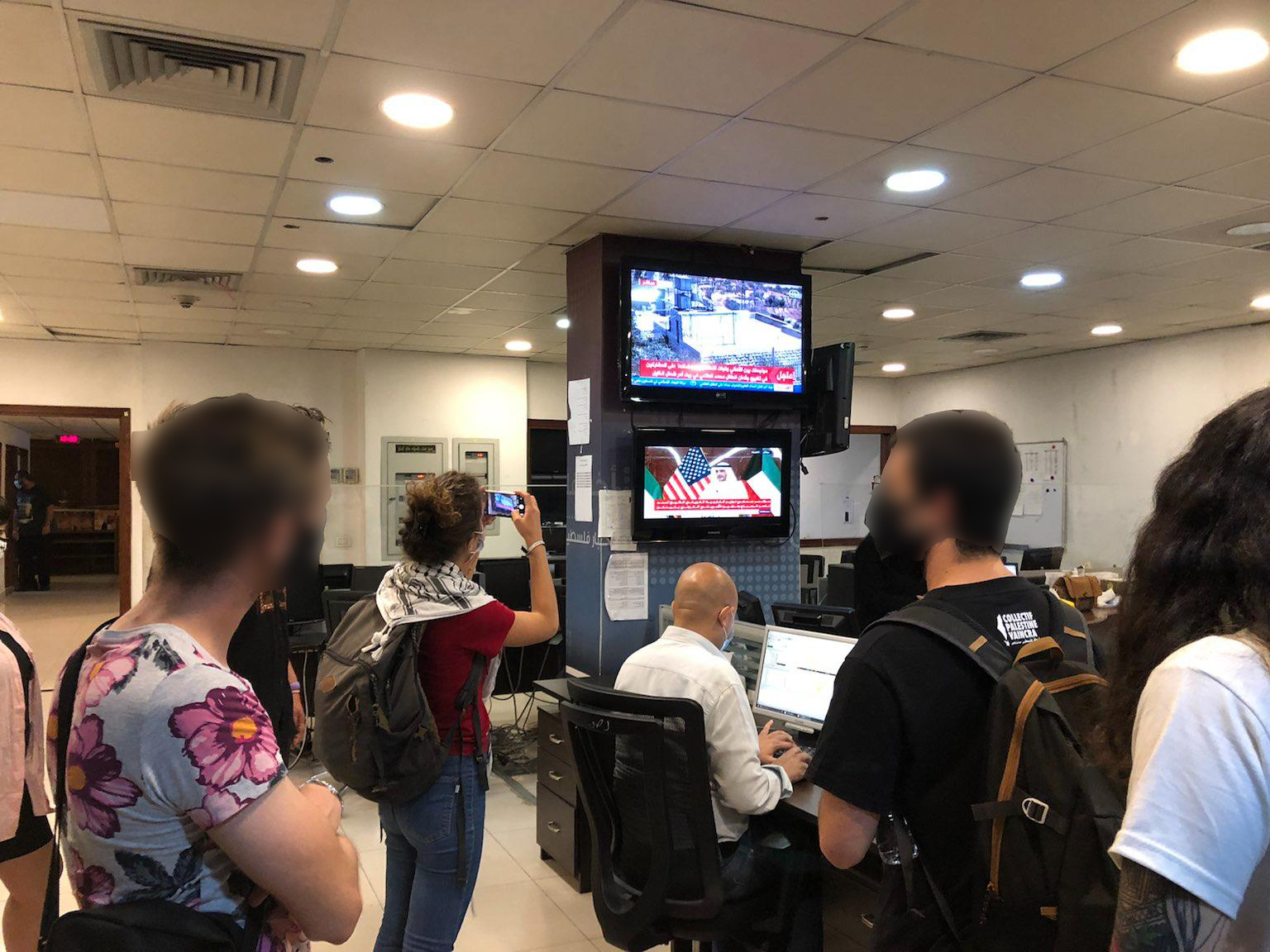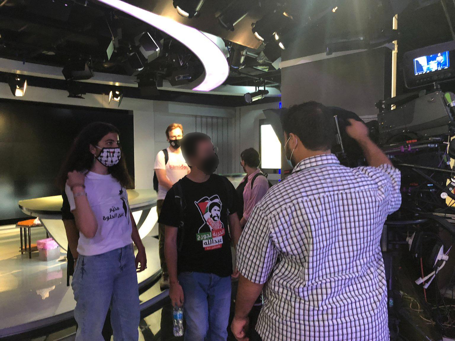On the morning of Friday 30 August, the Ghassan Kanafani Brigade, the Samidoun delegation to Lebanon, visited the recording studio of the “Palestine Today” TV-channel. We were given a tour of the whole studio, showing us the production and recording rooms, and the studio. The delegation also had the opportunity to meet with Saif Mau’ed, director of Palestine Today, and Mohamad Uthman, who before being the coordinator of correspondents was himself a correspondent in the Great Return March in Gaza, where he was shot by the Zionist military forces.