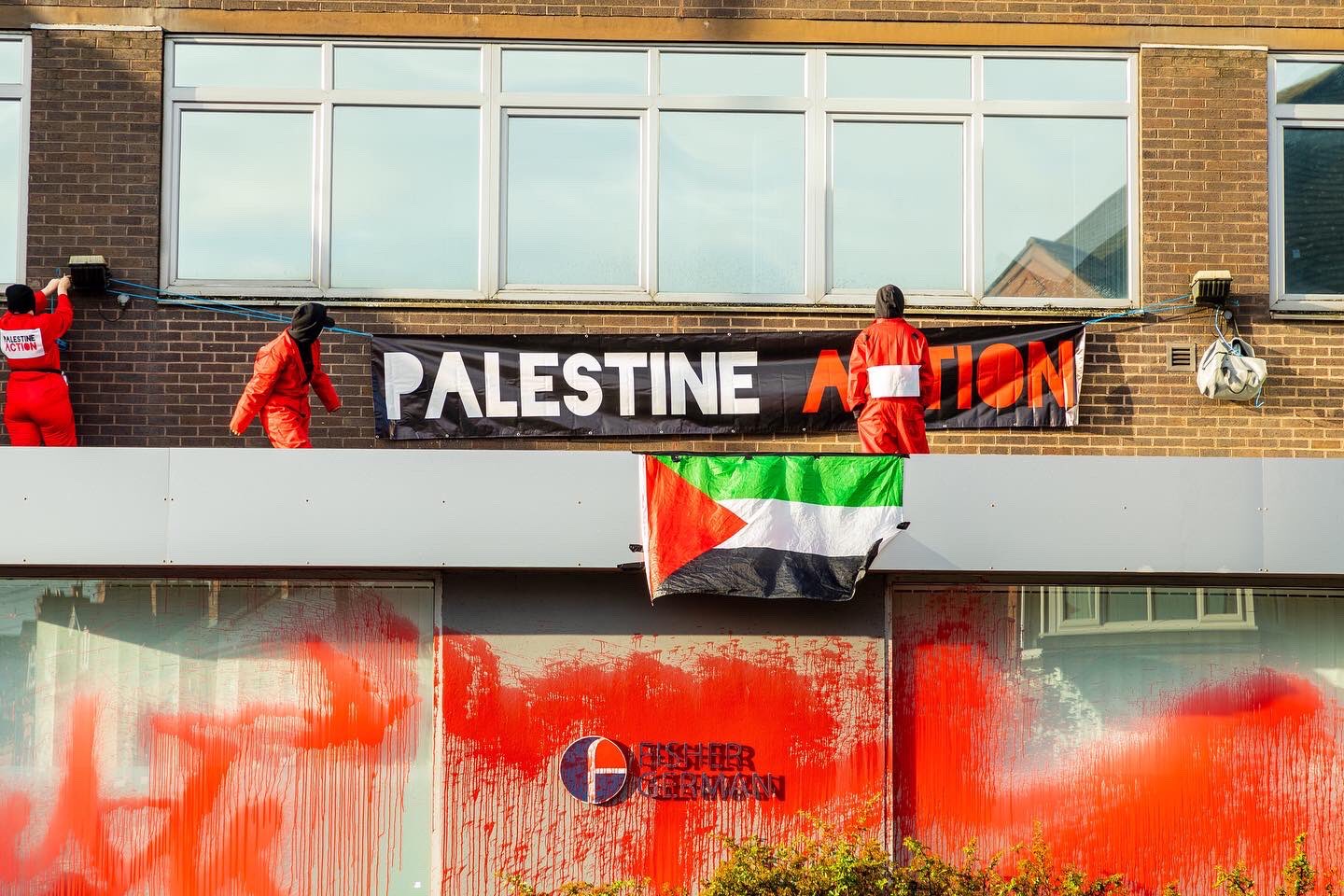 Palestine Action’s direct actions have shut down Elbit arms factories across Britain, costing the company and drawn worldwide attention for their effectiveness in disrupting profiteering from colonialism, apartheid and occupation. Just today, 5 July, three Palestine Action activists occupied the offices of Vine Property Management, the property manager of Israel’s drone engine factory, Elbit subsidiary UAV Engines in Shenstone, Staffordshire. They chained the gates of the site shut and sprayed the building with blood-red paint.