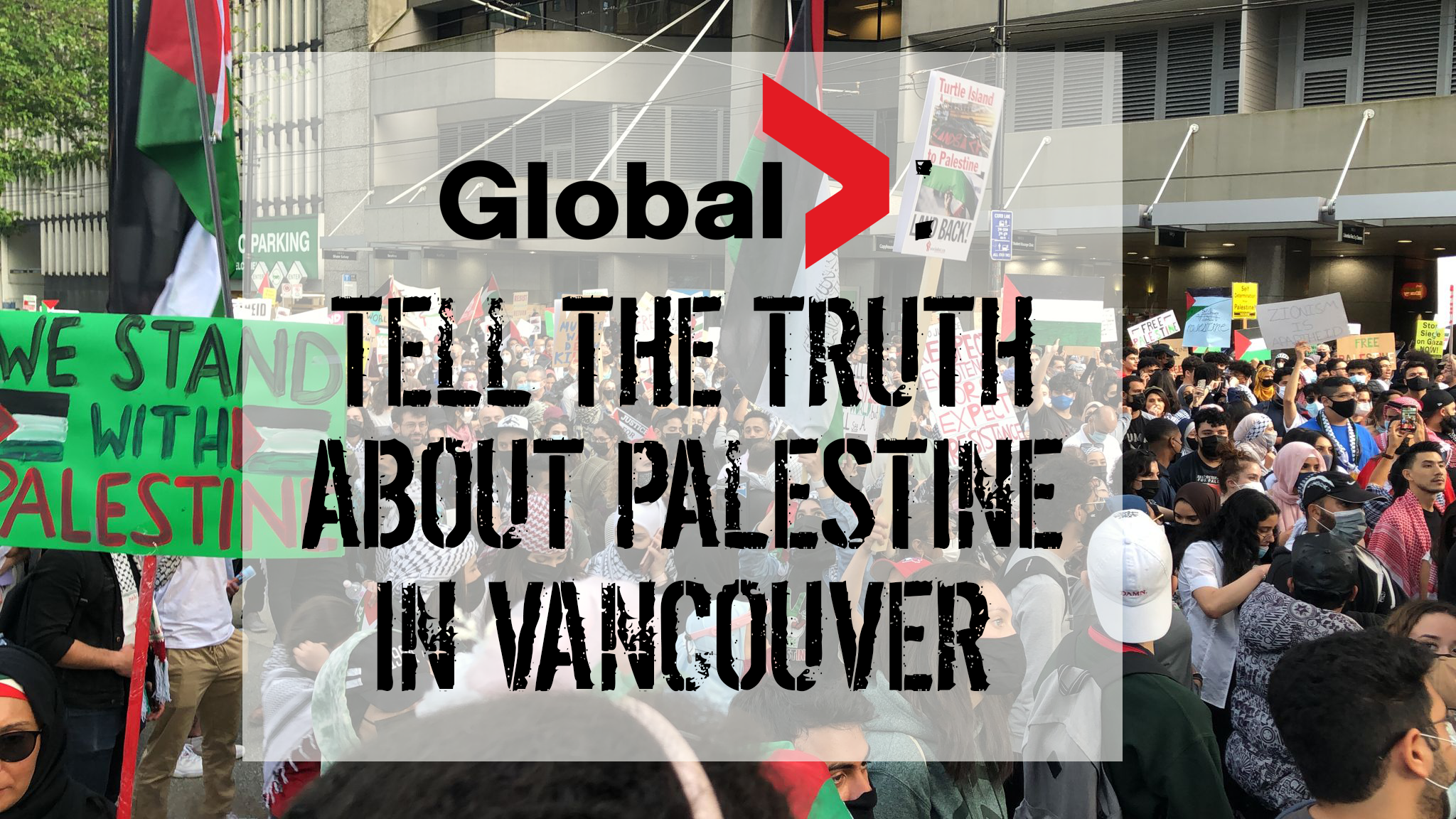 - Egregious double standards on Palestine: Ignoring and erasing the large peaceful demonstrations by people in Vancouver in the past weeks in support of Palestine but giving exclusive airtime to an Israel supporter to make false claims against the demonstrators. Would a Palestinian business owner receiving similar targeted harassment and hate from Zionists also receive such sympathetic coverage from Global TV? Or, would they be ruthlessly fact-checked, counter-balanced by “expert” opinions and both-sided into oblivion?