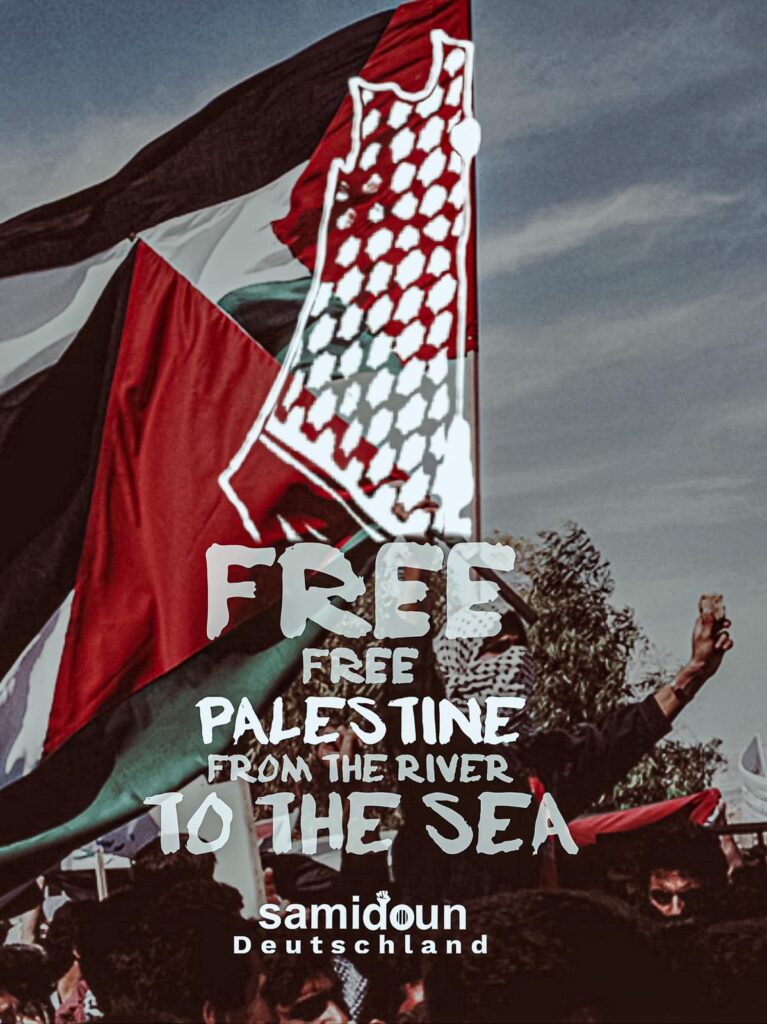 From the left: Samidoun Deutschland (Germany), Palästina Antikolonial (Germany), Zusammen kämpfen Magdeburg (Germany), Volksrat der Suryoye in Europa (Germany), Free Palestine Movement FFM (Germany), Studis gegen rechte hetze (Germany), Antifa Jugend Augsburg (Germany), Internationale Jugendgruppe Siegen (Germany), Das Palästina Portal (Germany), Institut für Palästinakunde e.V. (Germany), Palästina spricht NRW (Germany), Rote Jugend Schwaben(Germany), Duisburger Netzwerk gegen Rechts (Germany), Samidoun Palestinian Prisoner Solidarity Network (international), Palestinian Youth Movement (US), Al-Awda – the Palestine Right to Return Coalition (US), Within Our Lifetime – United for Palestine (US), Alkarama Palestinian Women’s Mobilization (Spain), US Campaign for the Academic and Cultural Boycott of Israel (US), Collectif Palestine Vaincra (France), International Solidarity Movement (ISM) Northern California, Canada Palestine Association (Canada), Students Against Israeli Apartheid – University of Toronto (Canada), Palestine Solidarity Collective at York University (US), National Students for Justice in Palestine (US) – National SJP (US), Internationalt Forum – Middle East Group (Denmark), Dar al Janub – Verein für antirassistische und friedenspolitische Initiative (Austria), McGill Students in Solidarity for Palestinian Human Rights (Canada), University of Waterloo Students for Palestinian Rights (Canada), Solidarity for Palestinian Human Rights – University of British Columbia (Canada), Laurier Palestinian Students Association (Canada), Yeni Demokratik Gençlik YDG (Germany), Solidarity for Palestinian Human Rights – SPHR Queen’s University (Canada), Atik – Confederation of workers from Turkey in Europe (European), Revolutionaire Eenheid (Netherlands), Palästina Spricht (Germany), Netzwerk Freiheit für alle politischen Gefangenen (Germany), Queerproletariatet (Sweden)