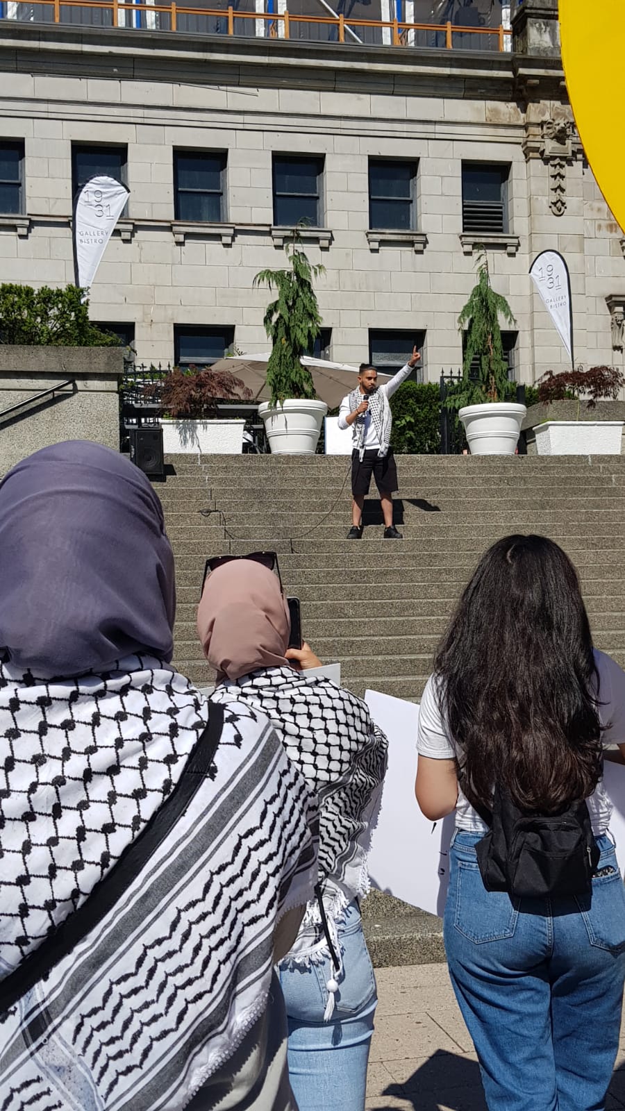 Speakers representing SPHR UBC discussed Palestinian identity, organizing and resistance inside and outside Palestine, even as Palestinians have faced over 70 years of ongoing Nakba – and ongoing resistance. The speaker representing Independent Jewish Voices emphasized that Israel is a colonial project, emphasizing support for Palestinian and indigenous resistance.