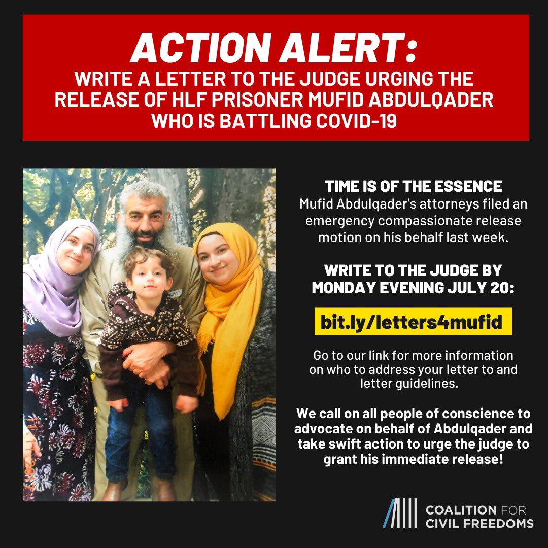 ACTION ALERT: WRITE A LETTER TO JUDGE SAM A. LINDSAY URGING THE RELEASE OF HLF PRISONER MUFID ABDULQADER WHO IS BATTLING COVID-19