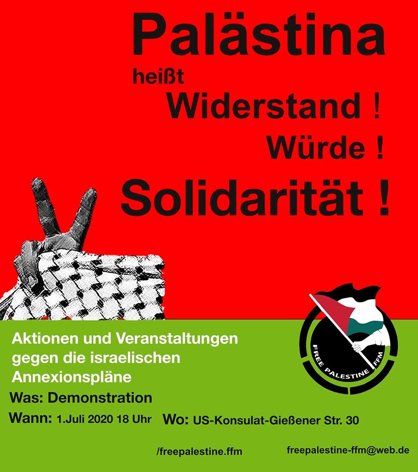 Samidoun Palestinian Prisoner Solidarity Network urges all organizations in support of Palestinian liberation to endorse the call to action by Samidoun Network in occupied Palestine and in the diaspora, originally released in Arabic, against the prospect of Israeli annexation of the occupied West Bank, and to mobilize internationally on Wednesday, 1 July, the day the Israeli state threatens to escalate its ongoing project of colonialism, dispossession and ethnic cleansing.