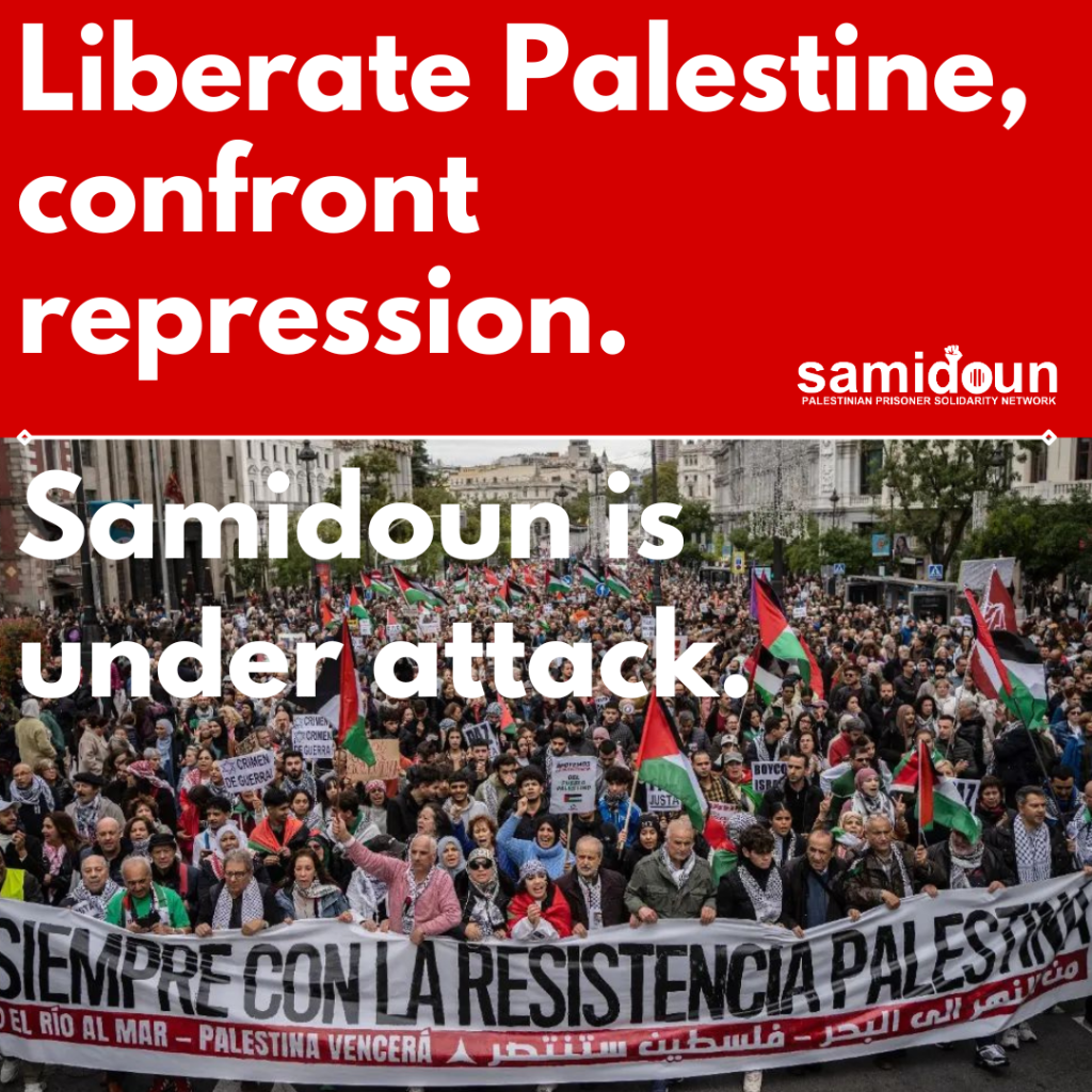 This ban comes after baseless sham accusations by the US, Canada, Netherlands, and zionist entity, all aimed at silencing the liberation movement and scaring other organizers. Framing Samidoun’s activities in support of Palestinian prisoners for the last 13 years “terrorism” is part of an increasingly aggressive stance that seeks to criminalize Palestinian solidarity, undermine grassroots mobilization, and obscure the injustices and genocide faced by the Palestinian and Arab peoples, especially the prisoners’ movement.