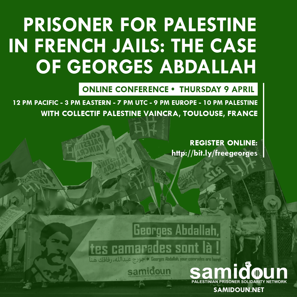 Theme: Day of Action for Prisoners for Palestine in Arab and International Jails: Free Georges Abdallah, the Holy Land Five and fellow Palestinian prisoners
