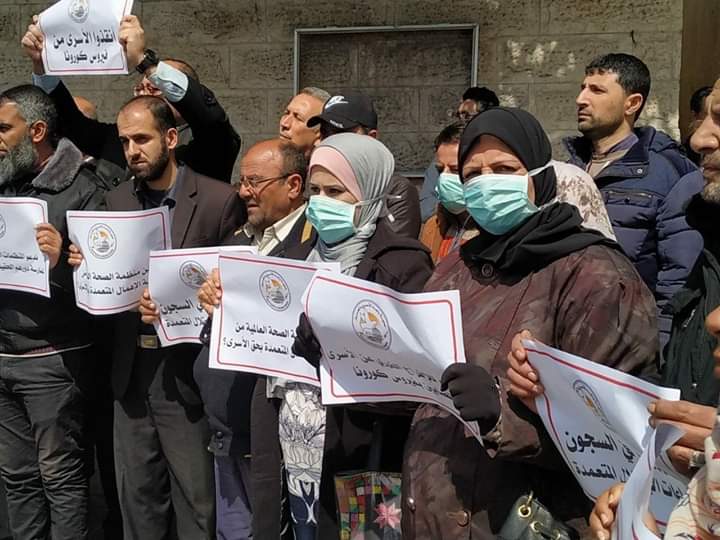 Palestinians in Gaza demand coronavirus protection for Palestinian prisoners, 19 March. Photo: QudsNews