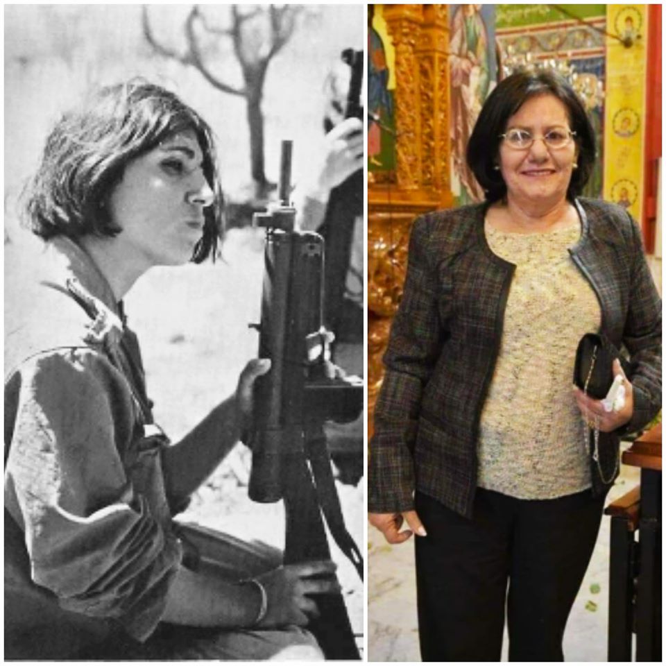 Therese Halasa as a young fighter in the camps and later in life, living in Amman after her release.