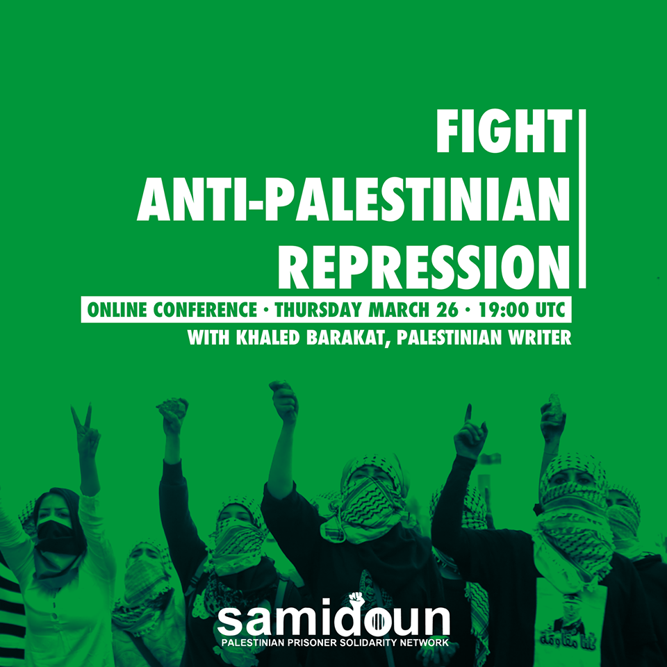 Join Samidoun Palestinian Prisoner Solidarity Network for an important conversation on anti-Palestinian repression in Germany and Europe with Khaled Barakat, Palestinian writer and the coordinator of the Campaign to Free Ahmad Sa’adat.
