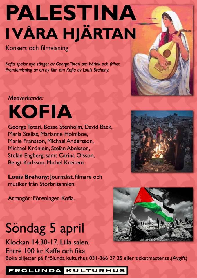 The premiere of the new film about Kofia, the Palestinian Swedish band, by director Louis Brehony. Kofia will play new songs by George Totari about love and freedom. Reem Anbar will play the oid.