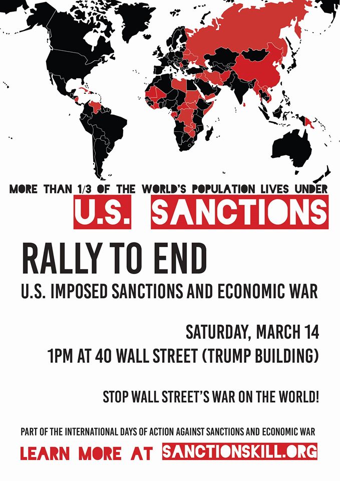 Many organizations have been fighting Sanctions and Economic War for some time. NOW is an opportunity to combine efforts to raise consciousness on this crucial issue.
