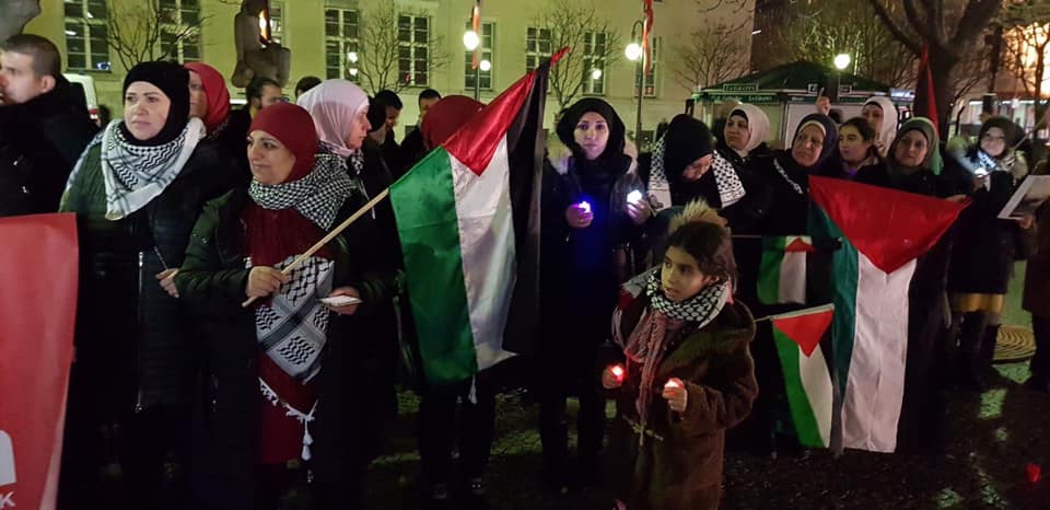In Berlin, Palestinians and friends of Palestine protested with a vigil marked by passionate chants calling for justice and liberation for Palestine, raising their voices to express their outrage at the latest Israeli crimes as well as the complicity of the imperialist powers in these ongoing attacks. They expressed their support for Palestinians’ right to resist occupation and oppression and demanded that the Palestinian Authority end its security coordination with the Israeli occupation and free Palestinian political detainees.