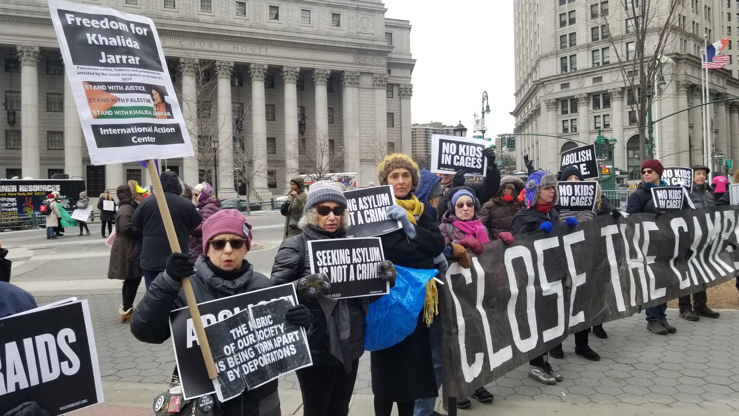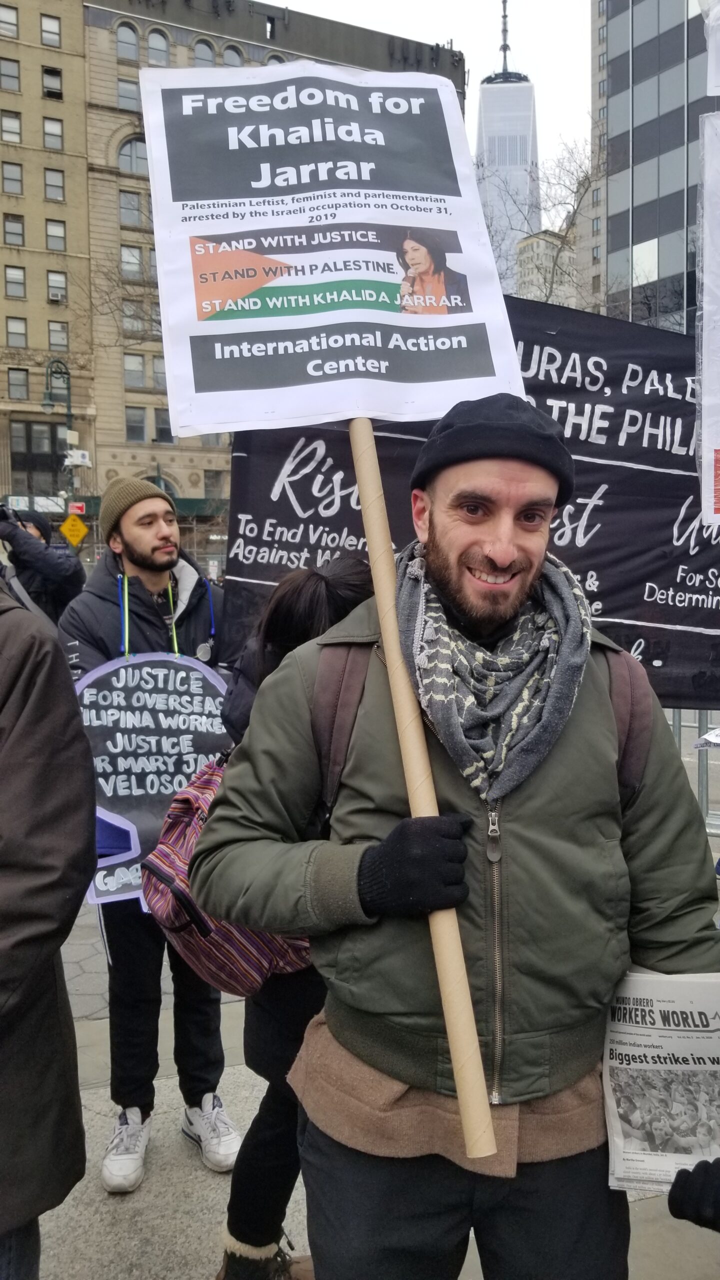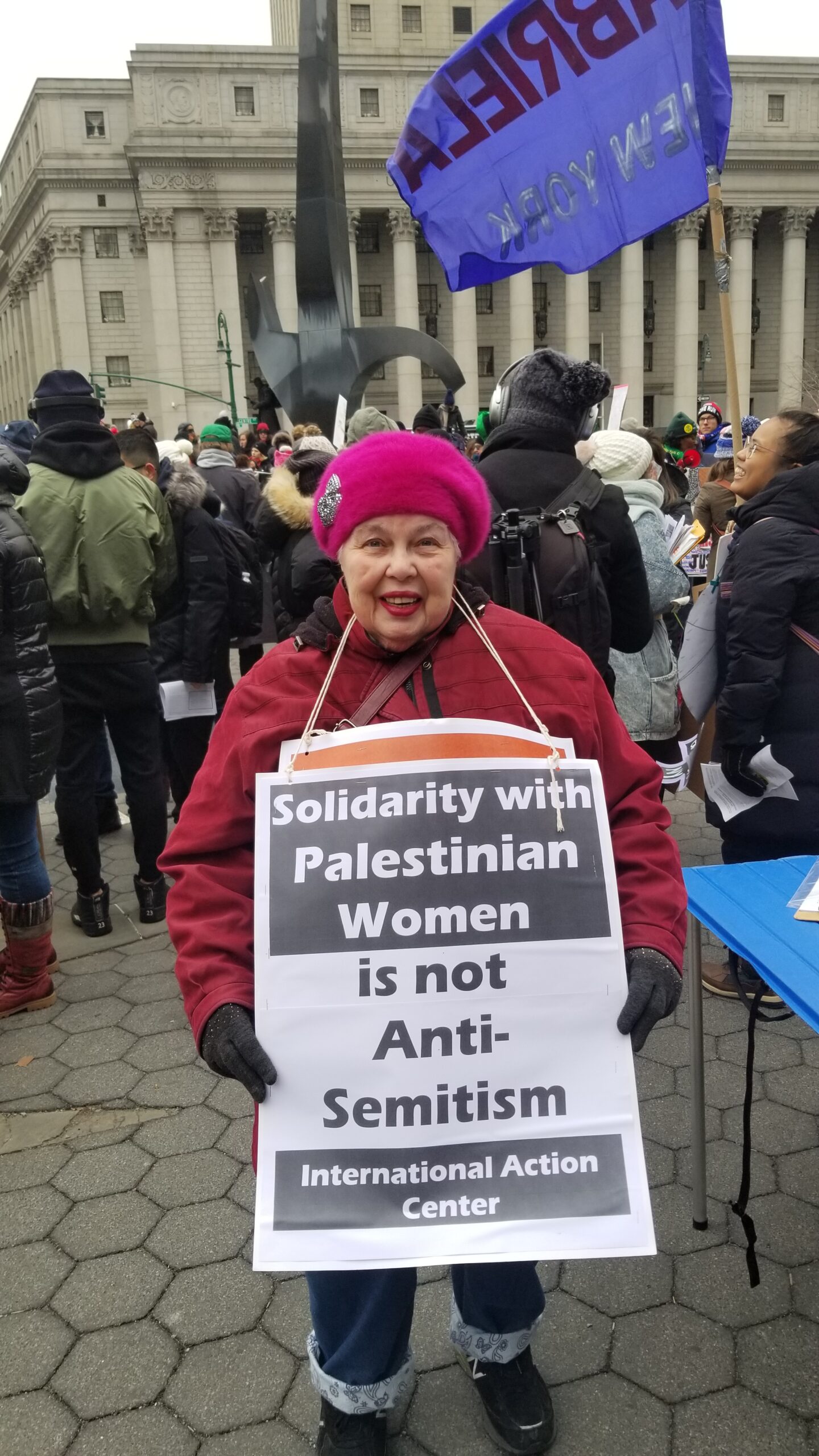 Participants in the Women’s March in New York City highlighted the case of imprisoned Palestinian leftist, feminist and parliamentarian Khalida Jarrar on Saturday, 18 January. Members of Samidoun New York and the International Action Center carried signs and distributed materials highlighting the struggles of Palestinian women prisoners in Israeli jails.