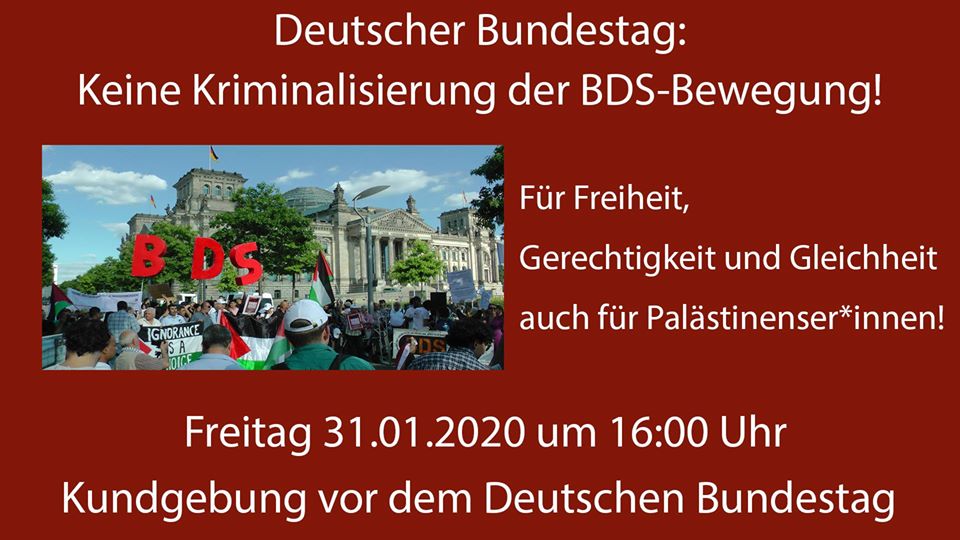 Join the rally at German Bundestag on Friday, 31.01.2020 at 4pm – Call from BDS Berlin