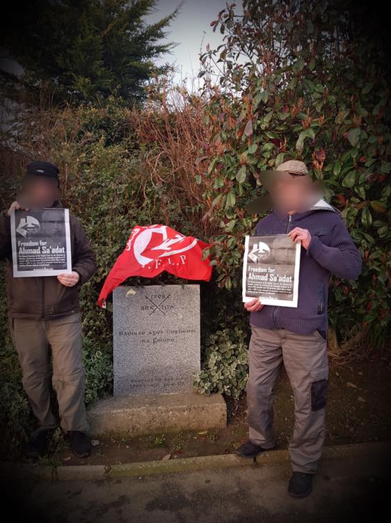 Anti-Imperialist Action Ireland comrades in Arklow County Wicklow, Ireland, held a commemoration at the site of the first battle of the United Irishmen in Arklow during the 1798 uprising, expressing their solidarity with Ahmad Sa’adat and Palestinian strugglers today. “From Ireland to Palestine, one struggle against Imperialism!” they concluded.