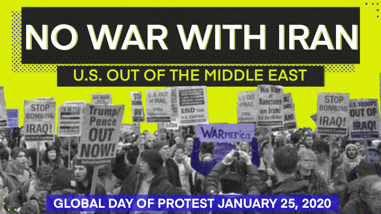 Initiators for this call include the ANSWER Coalition, CODEPINK, Popular Resistance, Black Alliance for Peace, National Iranian-American Council (NIAC), Veterans For Peace, US Labor Against the War (USLAW), Women’s International League for Peace and Freedom (WILPF), United National Anti-War Committee, Pastors for Peace/Interreligious Foundation for Community Organization, International Action Center, United For Peace and Justice, Alliance For Global Justice (AFGJ), December 12th Movement, World Beyond War, Dorothy Day Catholic Worker, About Face: Veterans Against The War, Dominican Sisters/ICAN, Nonviolence International, Food Not Bombs and many other anti-war and peace organizations. To add your name as an endorser click here.