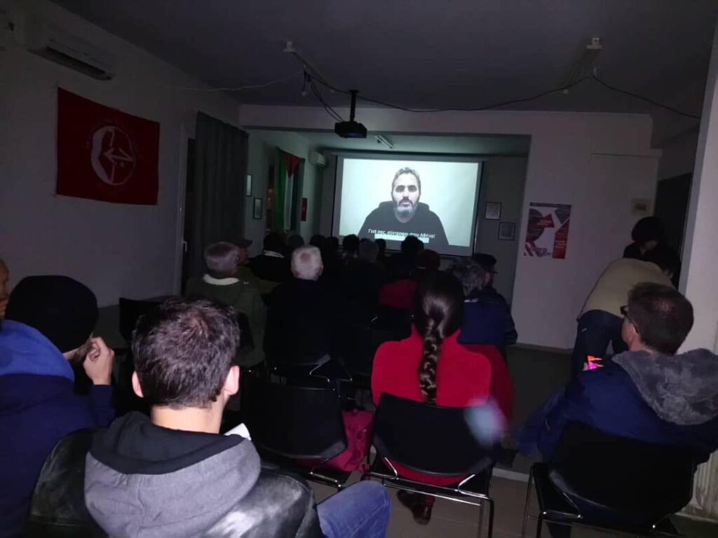 Ahmad Sa’adat och 5000 palestinska politiska fångar hålls fångna i israeliska fängelser med dessa regeringars fulla stöd och medbrottslighet. Vi vet att det är avgörande att vi internationaliserar kampen för befrielse: kampen för att alla palestinska fångar ska friges, att bygga kampanjen för att bojkotta Israel och hela bojkott-, avinvesterings- och sanktionsrörelsen, och för att få ett slut på alla former av stöd som möjliggjort och understött Israels brott mot det palestinska folket i över 70 år.