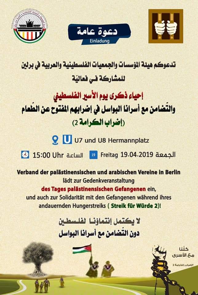 Today, comrades, here we are gathered again, in different countries of the world, to commemorate Palestinian Prisoners’ Day and especially to express our unwavering solidarity with the resistance in the Zionist jails and our complete confidence in the determination of the Palestinian revolutionary vanguards and their firm resolve to do what is necessary to tear our resisting comrades from the clutches of the Zionist criminal jailers.