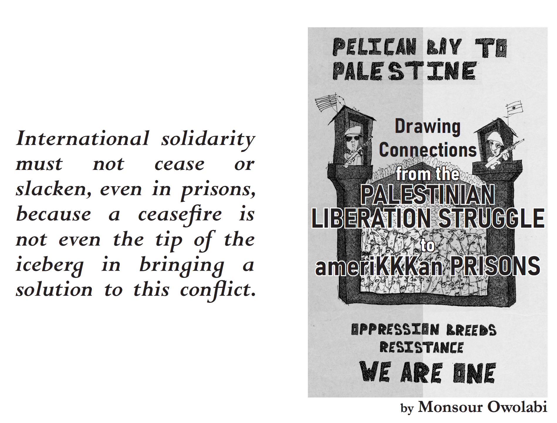“International solidarity must not cease or slacken, even in prisons, because a ceasefire is not even the tip of the iceberg in bringing a solution to this conflict.”