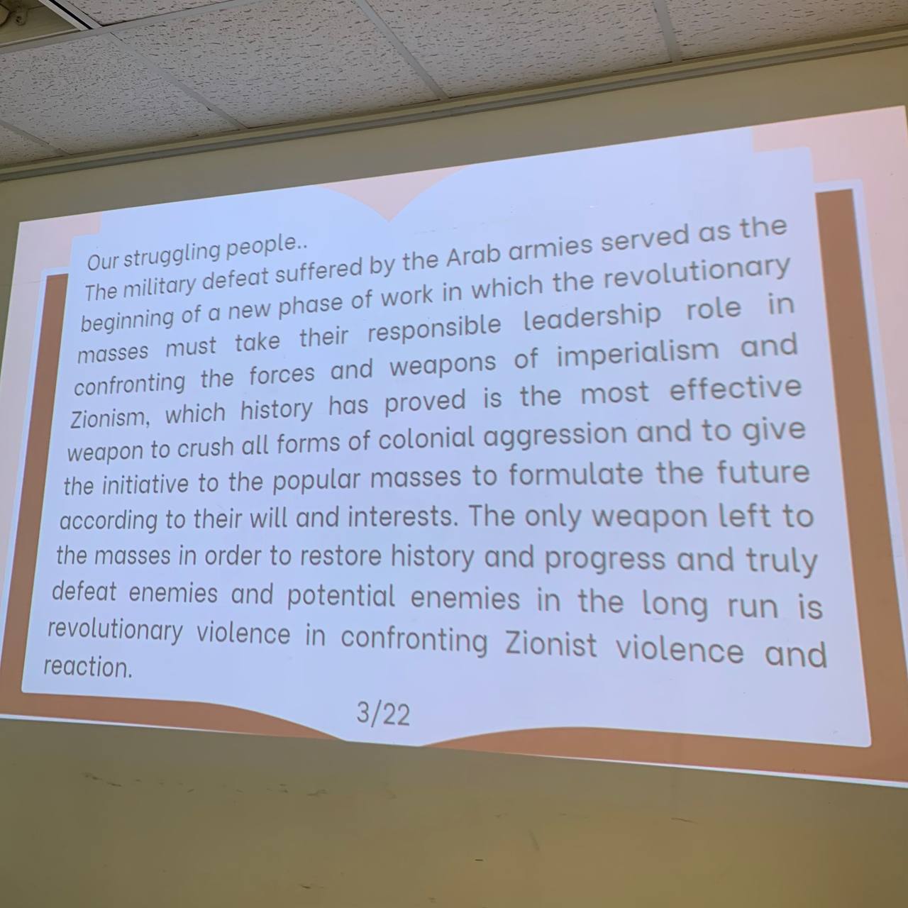 The following report, by Samidoun Toronto, illustrates part of the political education work that has been so important to the development of Samidoun and the development of a strong revolutionary movement in support of the Palestinian people’s struggle for liberation, return and self-determination from the river to the sea.