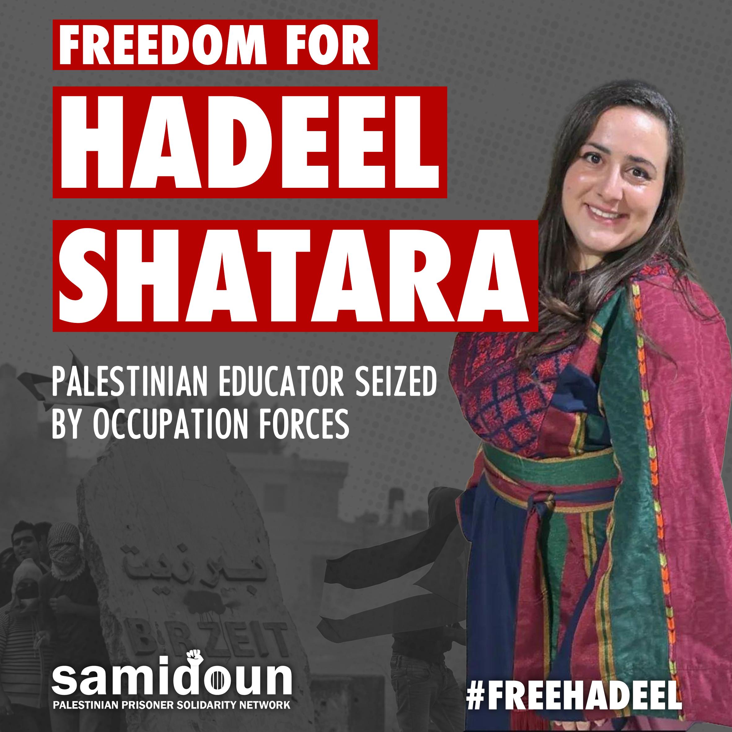 Free Hadeel Shatara and all Palestinian prisoners! Defend Palestinians’ right to education! From the river to the sea, Palestine will be free!